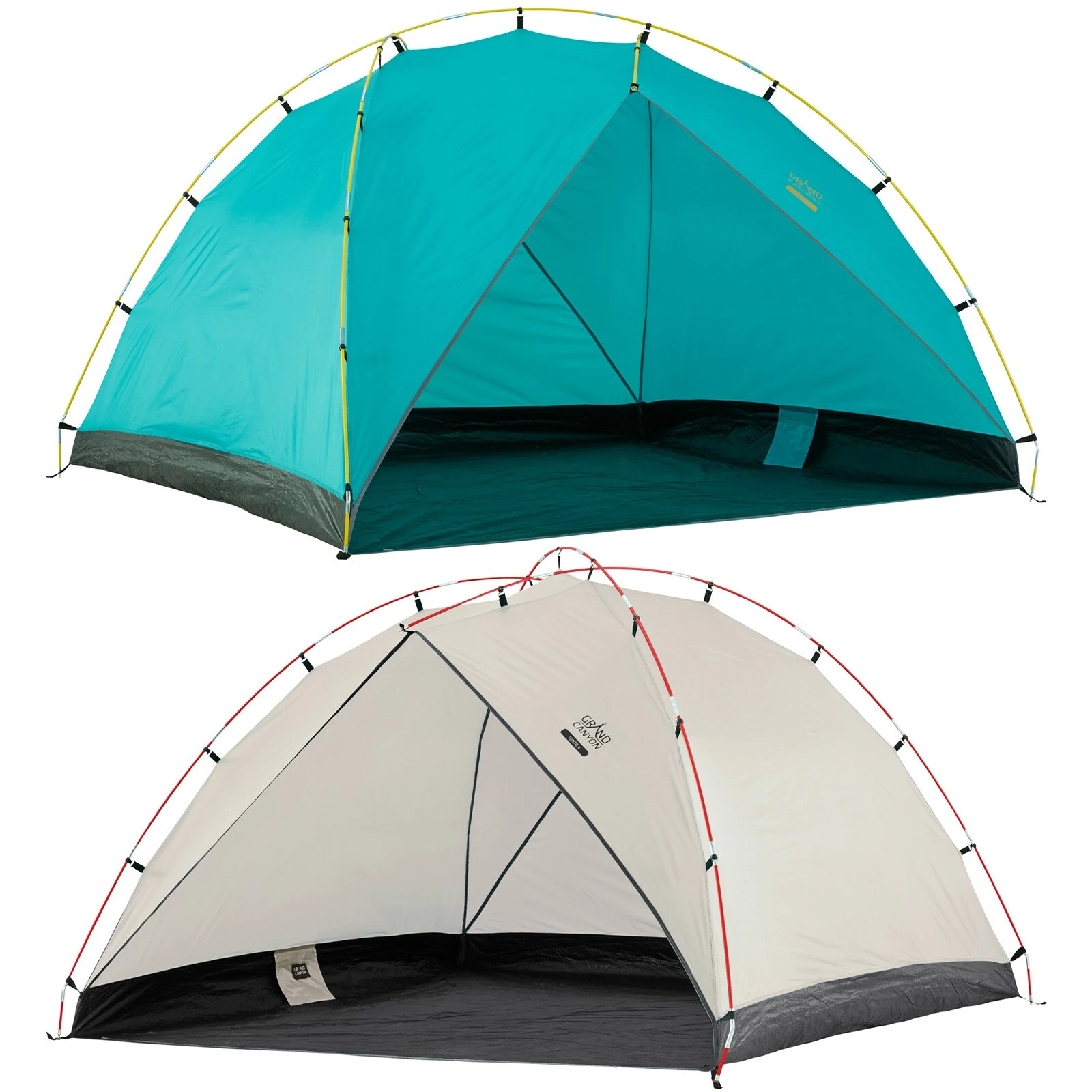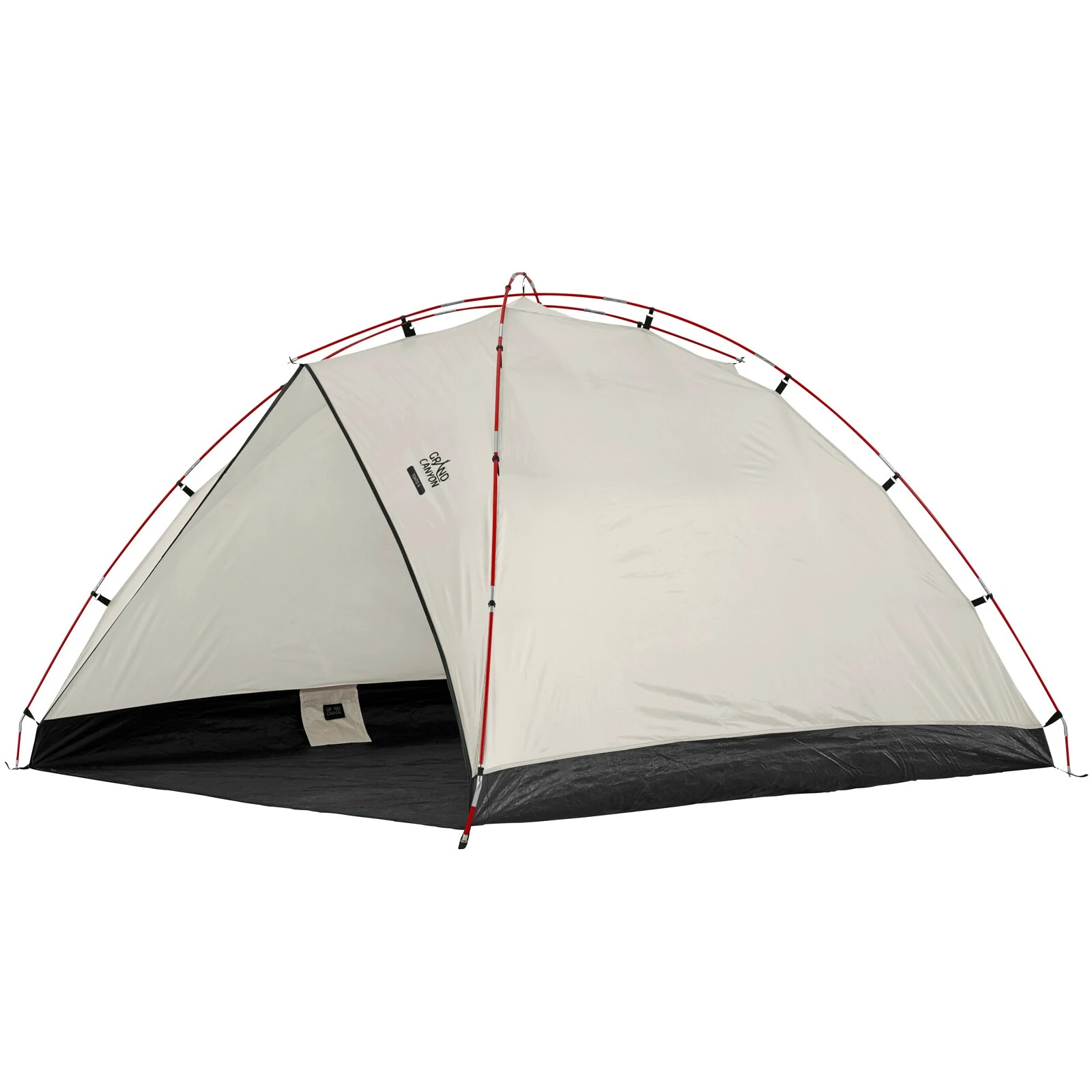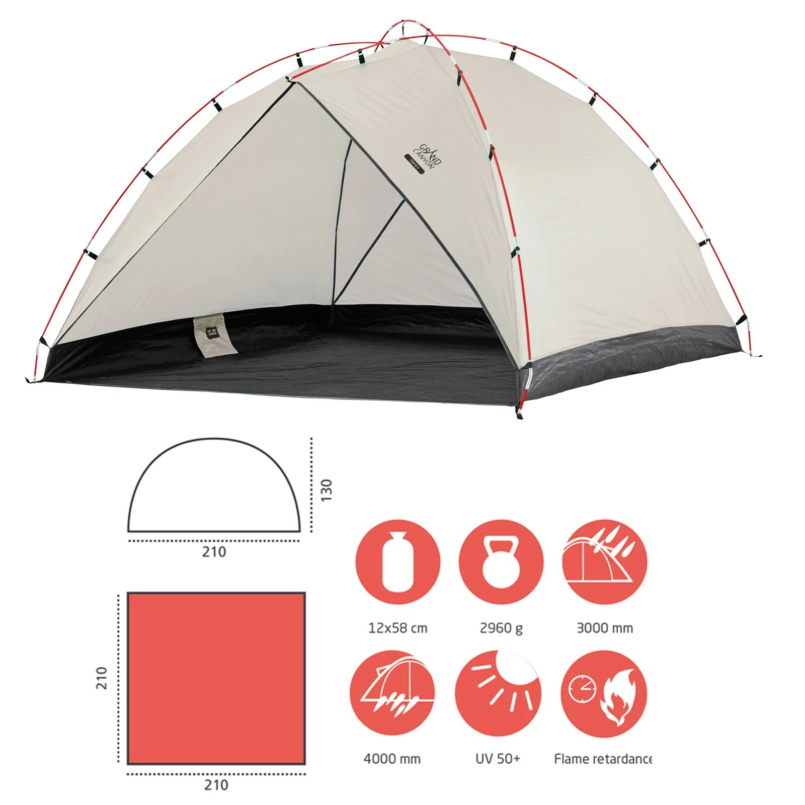 Den Strand genießen mit dem innovativen Strandzelt Tonto 4. Die Strandmuschel kann schnell auf- und abgebaut werden und schützt zuverlässig gegen UV-Strahlung sowie mit einer Wassersäule von 3000 mm selbst gegen starken Regen.