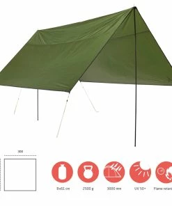 Das 9 m² große Tarp Zuni 3 ist als Sonnen- und auch als Regenschutz zu verwenden. Mit seiner Wassersäule von 3000 mm hält das Tarp bei entsprechendem Aufbau auch größeren Regengüssen stand, wobei die Stabilität durch die verstärkten Ecken zusätzlich erhöht wird. Ob auf der Campingreise oder im eigenen Garten – dieses universell einsetzbare Tarp findet immer eine Anwendung.