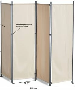 Unser vierteiliger Paravent – 225×170 cm (Doppelpack) – in der Farbe Beige, ist ein Alleskönner – Raumteiler, Trennwand, Sicht- und Windschutz.