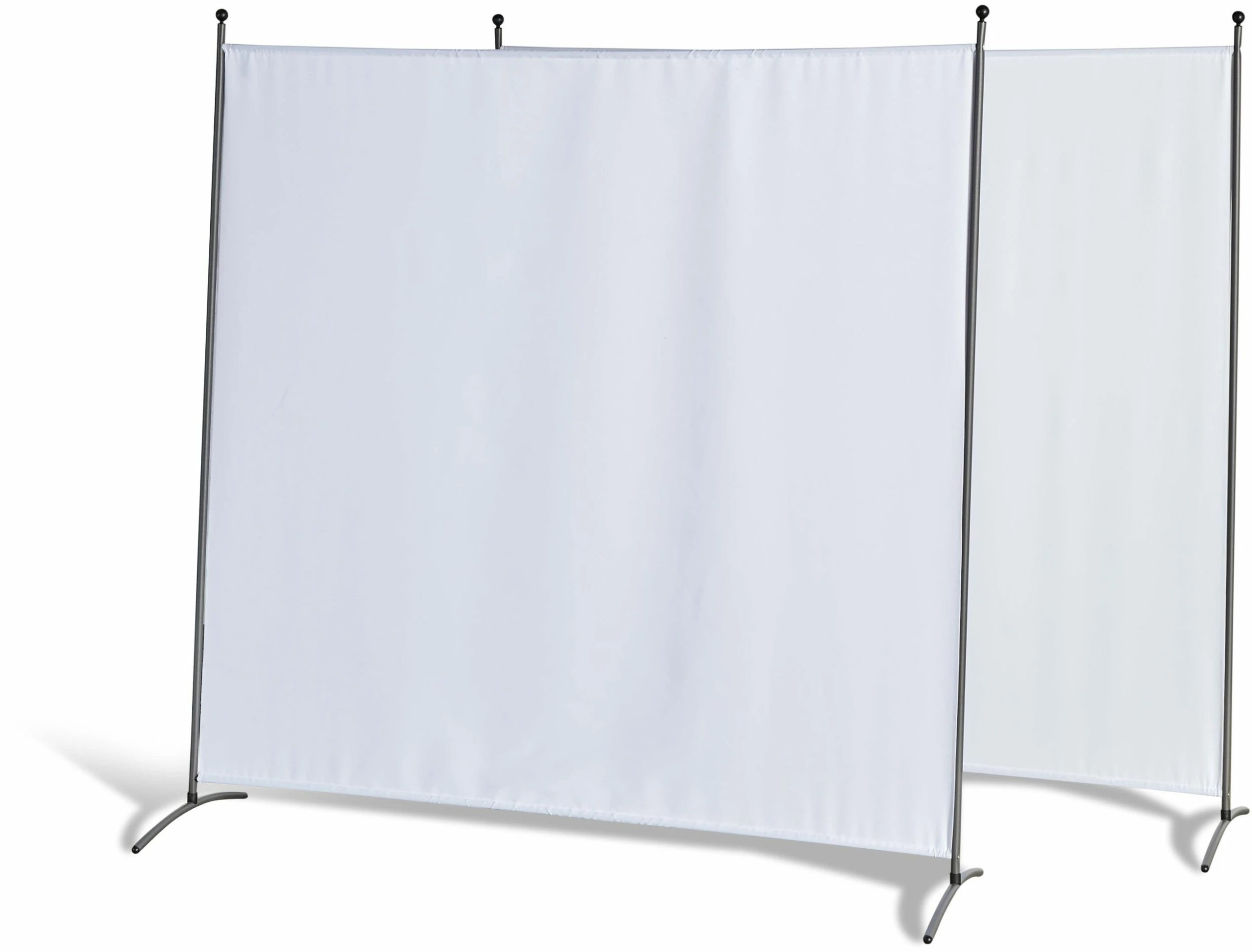 * Farbe: Weiß Mögliche Einsatzbereiche Arztpraxen, Kosmetikstudios, Büros, Messen, Fitness-Studios und vieles mehr. **Lieferumfang: 2x einteiliger Paravent 180×180 cm – Weiß.** **Die Ware wird zerlegt zur Selbstmontage geliefert.**