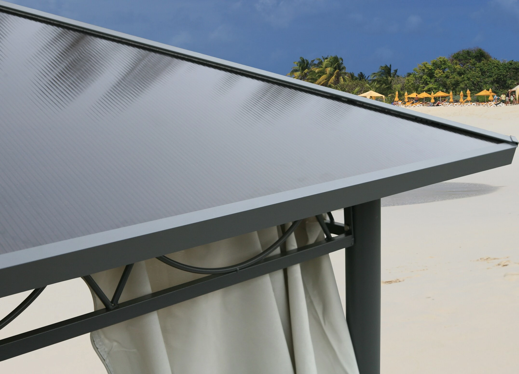 Passendes Ersatz Doppelstegplatten Set zu Hardtop Pavillon Meran 3×3,6m Version bis Baujahr 2020 – aus Polycarbonat.