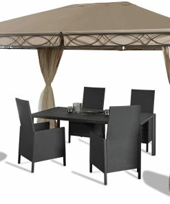 Das Dach aus Polyester ist strapazierfähig, UV beschichtet und wasserabweisend. Inklusive 4 Moskitonetzseitenteile und 4 geschlossenen Seitenteilen.