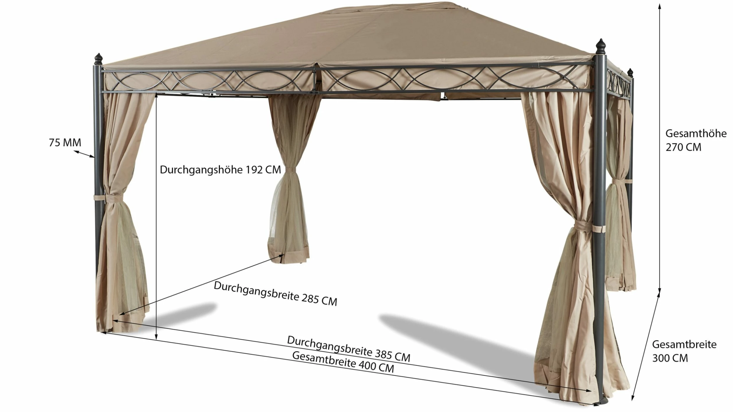 * Pavillonmaß: LxBxH 300x400x270cm.