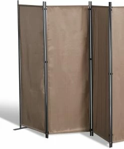 Unser vierteiliger Paravent – 225x170cm – in der Farbe Taupe, ist ein Alleskönner – Raumteiler, Trennwand, Sicht- und Windschutz.
