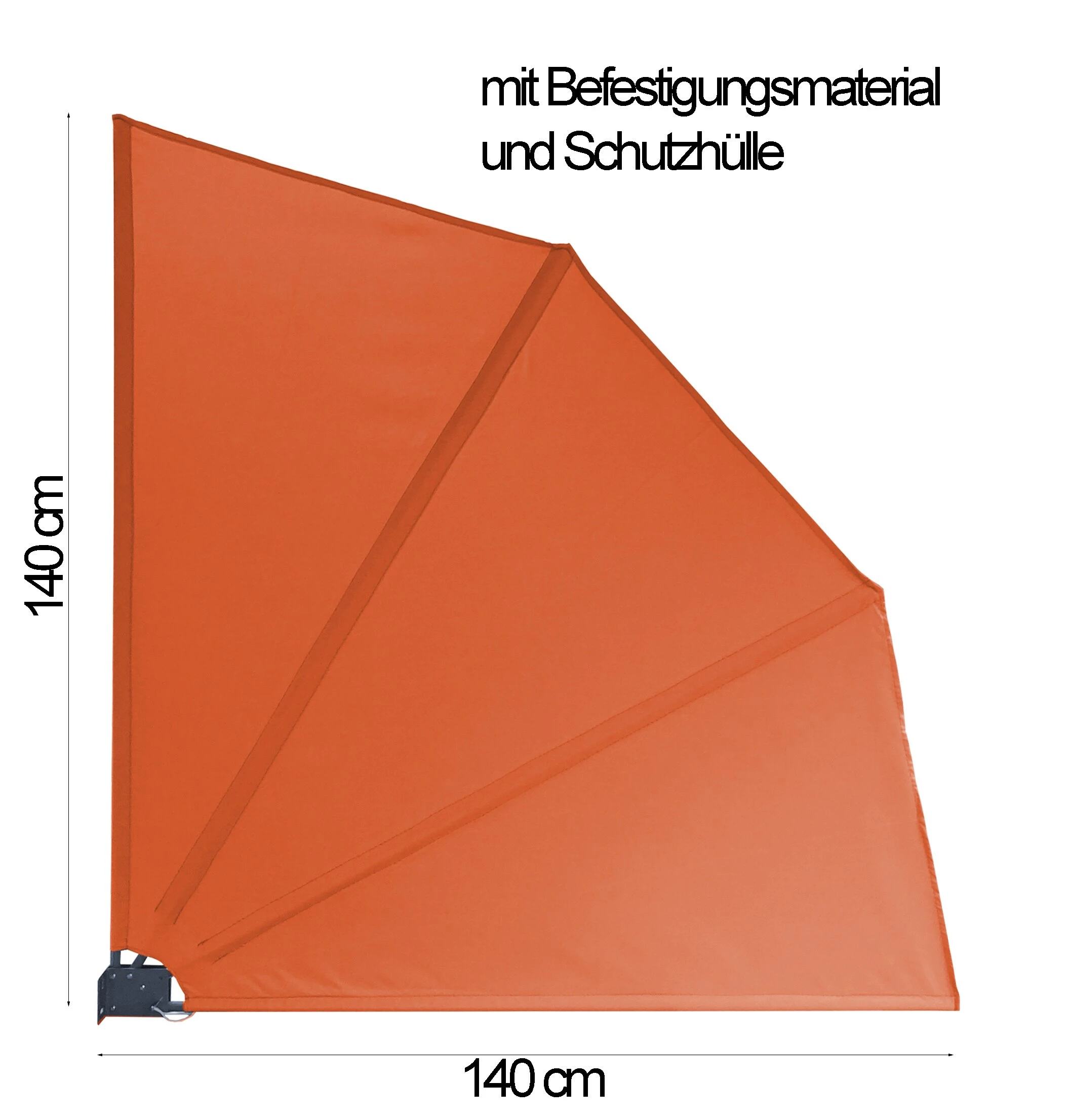 Jetzt können Sie einfach per Fächerfunktion Ihren Sichtschutz in einer Größe von 140 x 140 cm aufstellen. Mit nur einem Handgriff können Sie diesen Fächer öffnen und auch wieder schließen. Mit beiliegendem Befestigungsmaterial ist dieser Fächer leicht an der Hauswand zu montieren und zu arretieren.