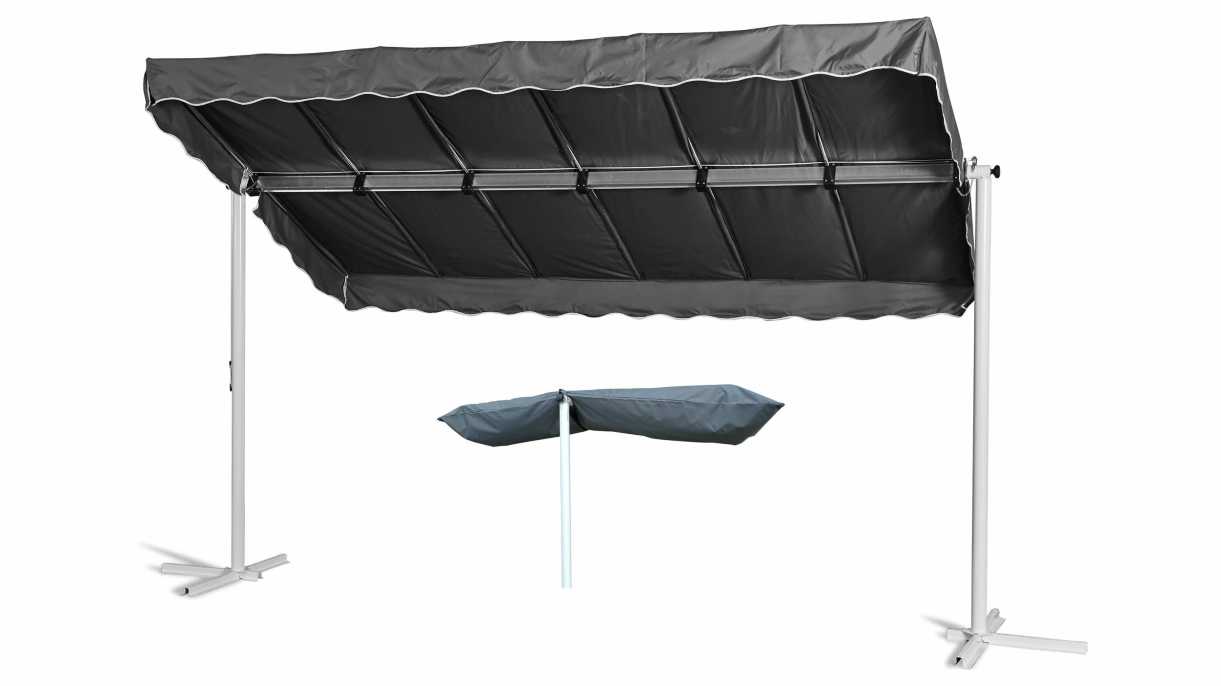 Universell verstellbare Ziehharmonika / Raff Markise als Schattenspender für den mobilen Einsatz auf Terrasse oder im Garten.