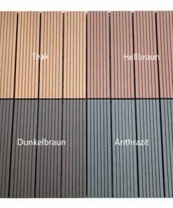 Mit unseren WPC Holzfliesen werden Ihre Terrasse und Balkon zu einem Hingucker. Gestalten Sie den Boden Ihres Außenbereichs schnell und einfach neu. Durch die Verwendung von WPC sind Ihre Terrasse und/oder Balkon sehr pflegeleicht und zugleich langlebig. Eine Nachbehandlung durch Streichen oder Ölen ist nicht notwendig. Die WPC Fliesen bestehen aus einem Gemisch von Holz und Kunststoff, das die Vorteile beider Werkstoffe ideal miteinander vereint. Die Oberfläche der Fliesen ist witterungsbeständig und splitterfrei und daher bedenkenlos barfuß begehbar. Somit eignen sich die WPC Fliesen auch hervorragend als Umrandung für Pools. Die leichte Maserung der Oberfläche sorgt für eine überzeugende Holzoptik und machen die umweltfreundlichen Fliesen zu einem echten Highlight in Ihrem Außenbereich. Die Unterseite der Terrassenfliesen ist mit einem Drainagegitter versehen, so dass diese auch nach einem Regenguss schnell trocknen und wieder ohne Rutschgefahr begangen werden können. Das praktische Klicksystem unserer Terrassenfliesen macht das Verlegen auch auf größeren Flächen kinderleicht und schnell. Die Fliesen werden einfach ineinander verhakt, wodurch eine stabile einheitliche Fläche entsteht.
