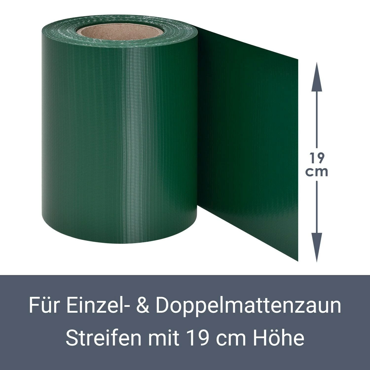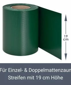 Die Höhe unserer Sichtschutzstreifen entspricht genau 19 cm, was ihn passend für alle üblichen Stabmattenzäune mit einer Standard Maschengröße von 20 cm macht. Der cleane Sichtschutz wirkt nicht nur sehr modern, sondern dient ebenfalls als effektiver Sicht-, Sonnen- und Windschutz.