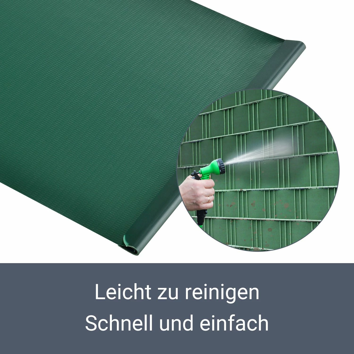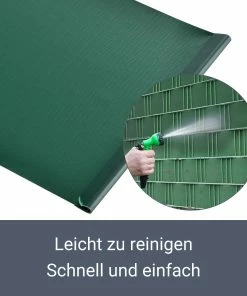 Unsere Sichtschutzstreifen in grün für Einzelstab- oder Doppelstabmattenzäune bieten einen blickdichten Sicht-, Sonnen- und Windschutz. Optimal lassen sich auch unterschiedliche Farben zu einem individuellem Design kombinieren. Fixieren können Sie die Zaunblende unkompliziert mit unseren mitgelieferten Clips. Unsere strapazierfähige und langlebige PVC Zaunfolie schützt Ihren Balkon, Garten oder Terrasse ideal vor Sonne, Wind und unerwünschten Blicken.