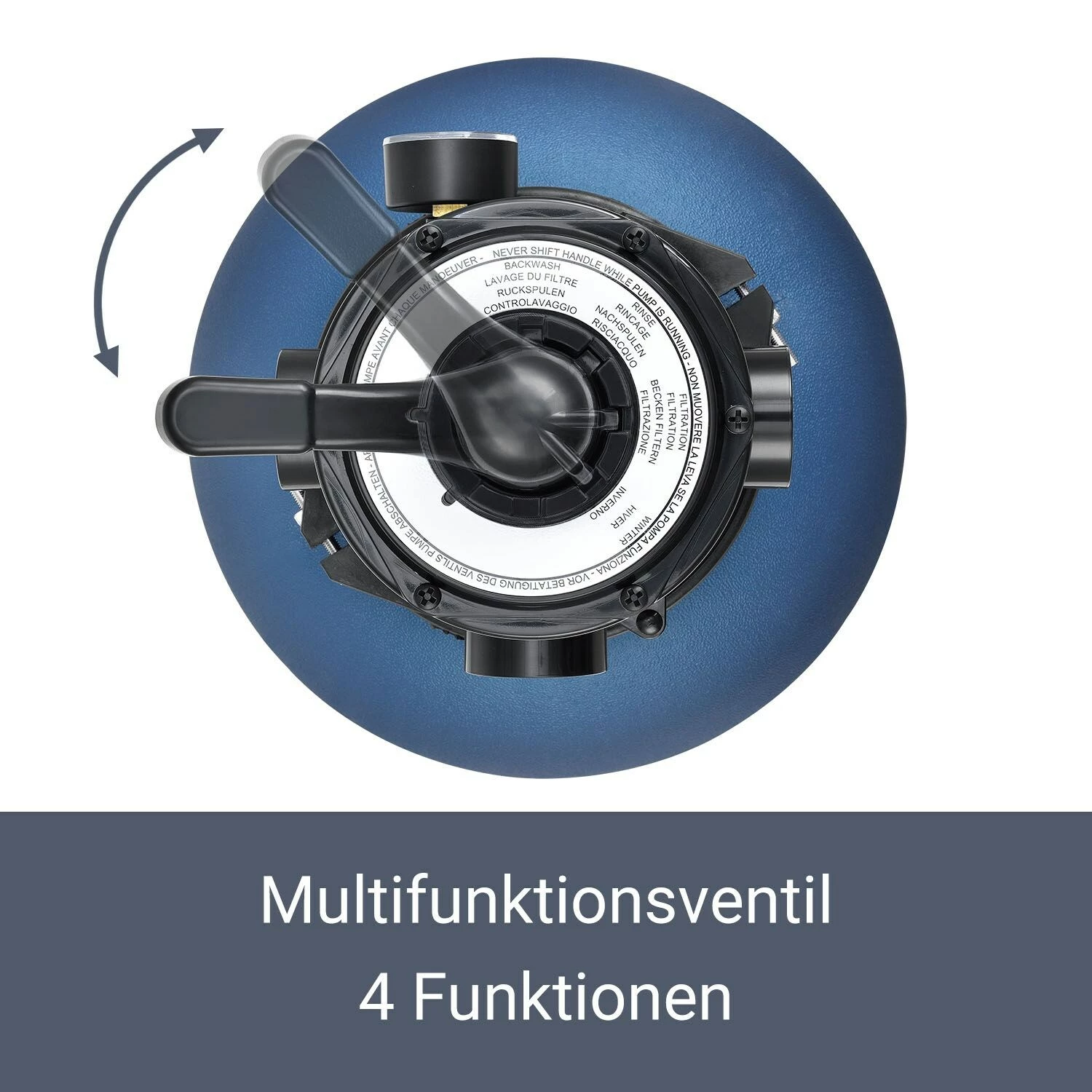 - Filtermaterial/Volumen: max. 23 kg Sand (auch Filterbälle als Filtermaterial verwendbar)