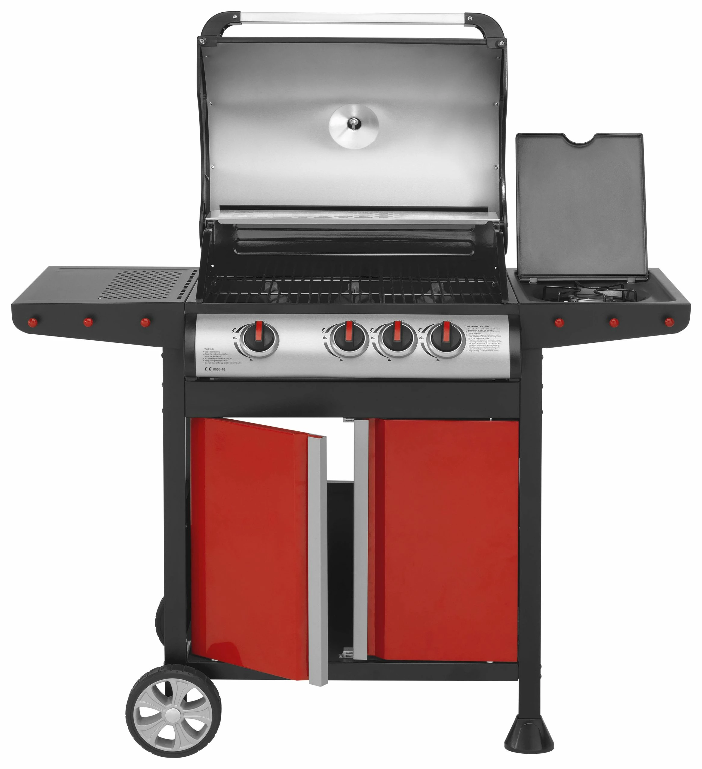 Ein echter Gasgrill Hingucker in leuchtendem Rot.