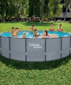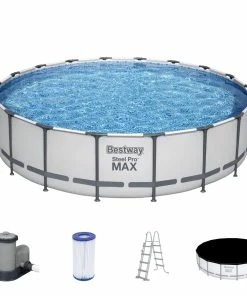 Mit einer Wassertiefe von 111 cm, die sich über die PoolDiagonale von über 5 Metern erstreckt, können Sie ganz bequem Schwimmen odersogar Tauchen. Insgesamt warten hier rund 16.000 Liter Wasserinhalt darauf, vonIhnen erobert zu werden. Der Einstieg gelingt bequem über die mitgeliefertenEinstiegsleitern aus Edelstahl für die Innenseite und Holz für die Außenseite.