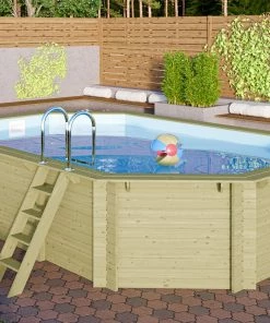 Karibu CHILLROI | Achteckiger Massivholz Pool Länglich, 358 X 569 X 124 Cm, Modell 4 | Inkl. Zubehör Und Pool Leitern