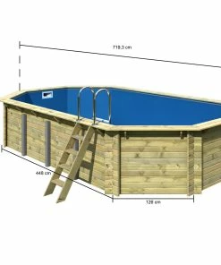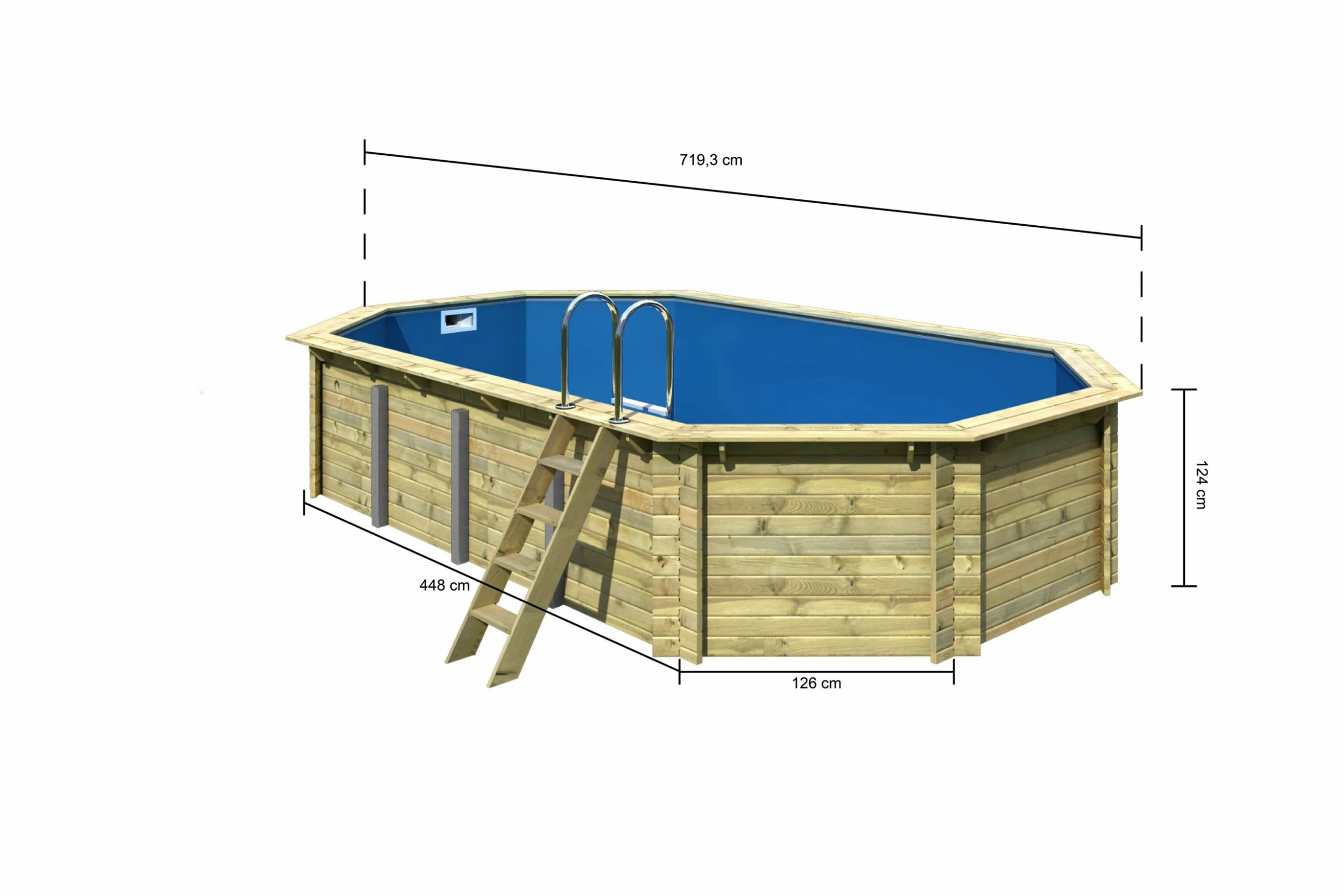 Mit einer Wassertiefe von 111 cm, die sich über die Pool Diagonale von über 7 Metern erstreckt, können Sie ganz bequem Schwimmen oder sogar Tauchen. Insgesamt warten hier rund 21.000 Liter Wasserinhalt darauf, von Ihnen erobert zu werden. Der Einstieg gelingt bequem über die mitgelieferten Einstiegsleitern aus Edelstahl für die Innenseite und Holz für die Außenseite.