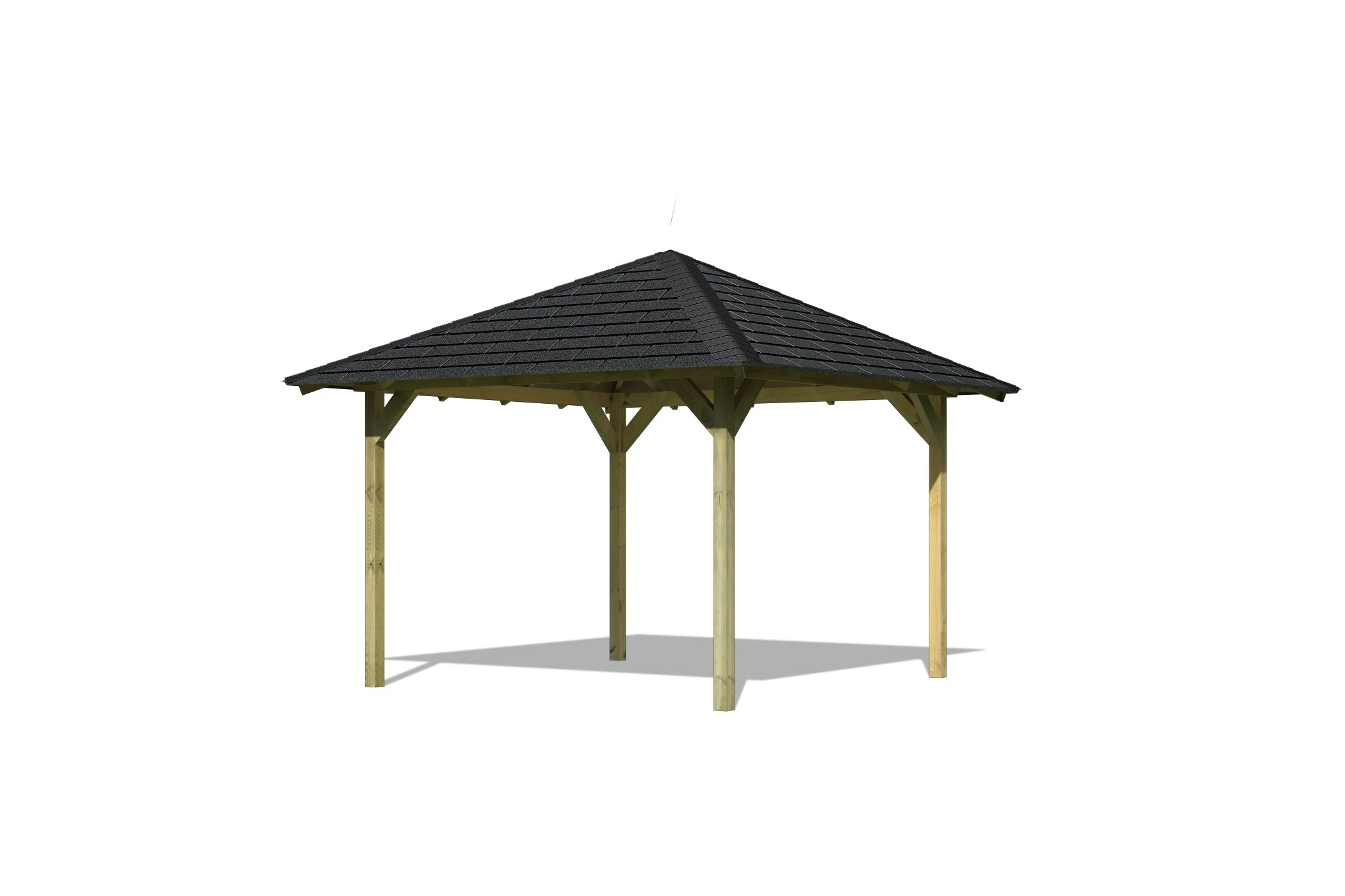 · LIEFERUMFANG: 1x Holzpavillon, 1x Montagematerial und -anleitung, 7x Paket Dachschindeln schwarz rechteckig
