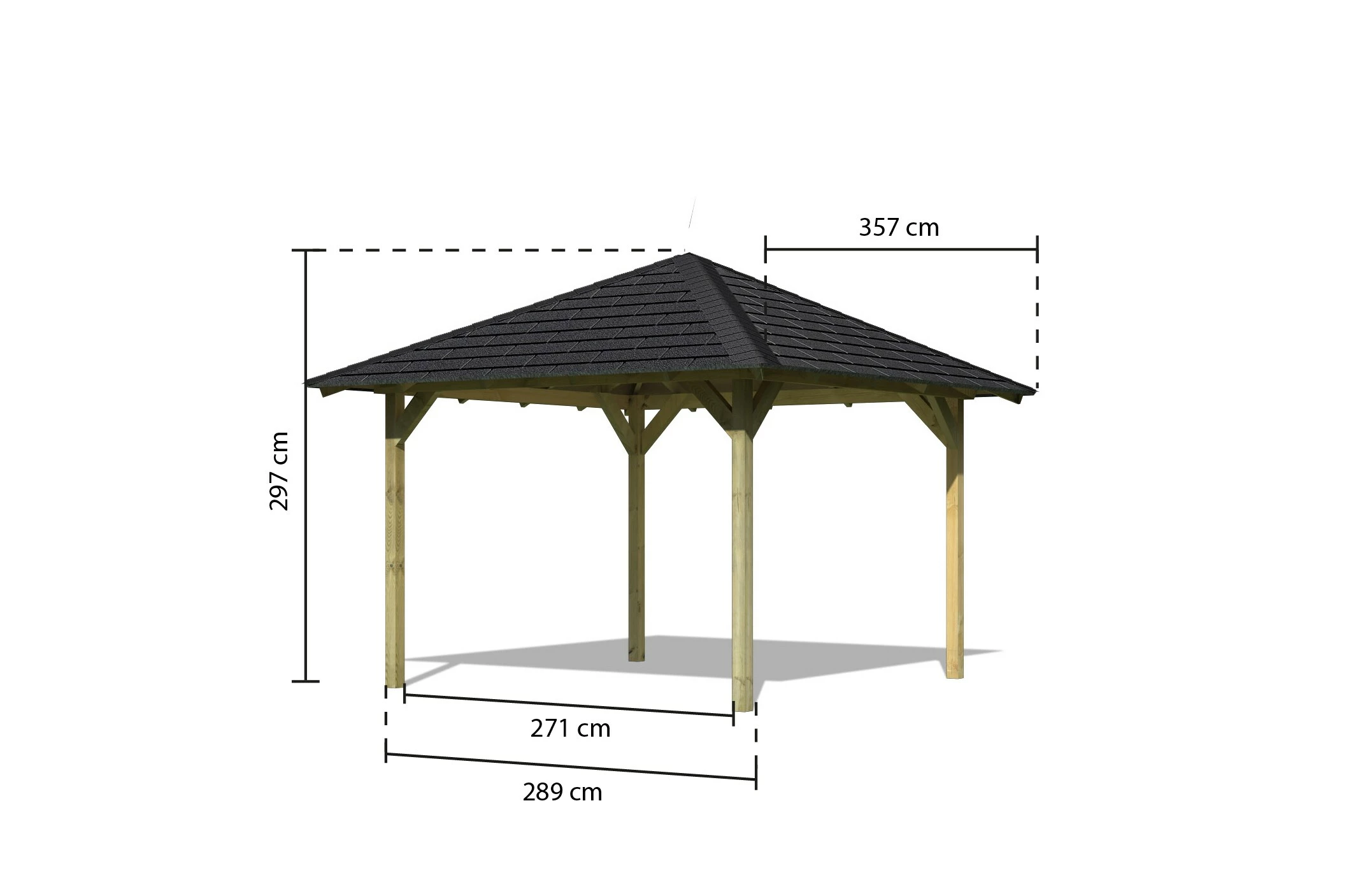 · Dachstandmaß: 357cm x 357 cm