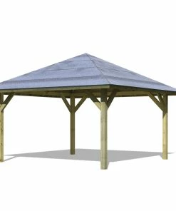 Die 4 Pfosten bzw. Standbeine stützen mit massiven Querverbindern und Kopfbändern das optisch ansprechende Walmdach. Das kesseldruckimprägnierte Holz des Pavillons ist resistent gegen Pilze, holzzersetzende Insekten und andere Witterungseinflüsse, sodass Sie lange Freude an Ihrem Pavillon haben werden. Der natürliche Holz-Look fügt sich ideal in jeden Garten ein.