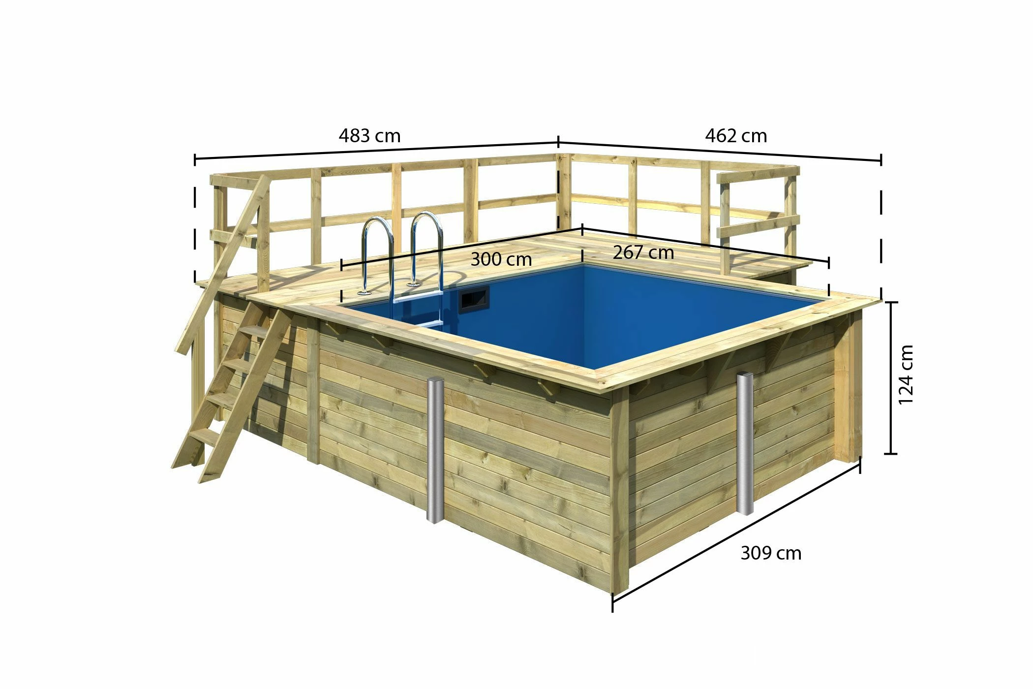 Produktinformationen für “Karibu | Rechteckiger kdi Massivholz Pool 308,7 x 276,5 cm | Set mit 2 Sonnenterrassen inkl.”