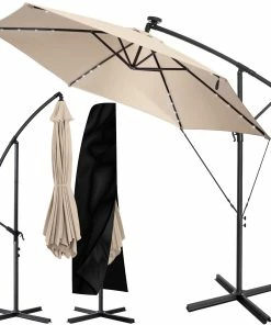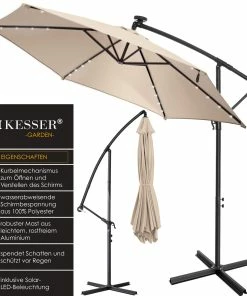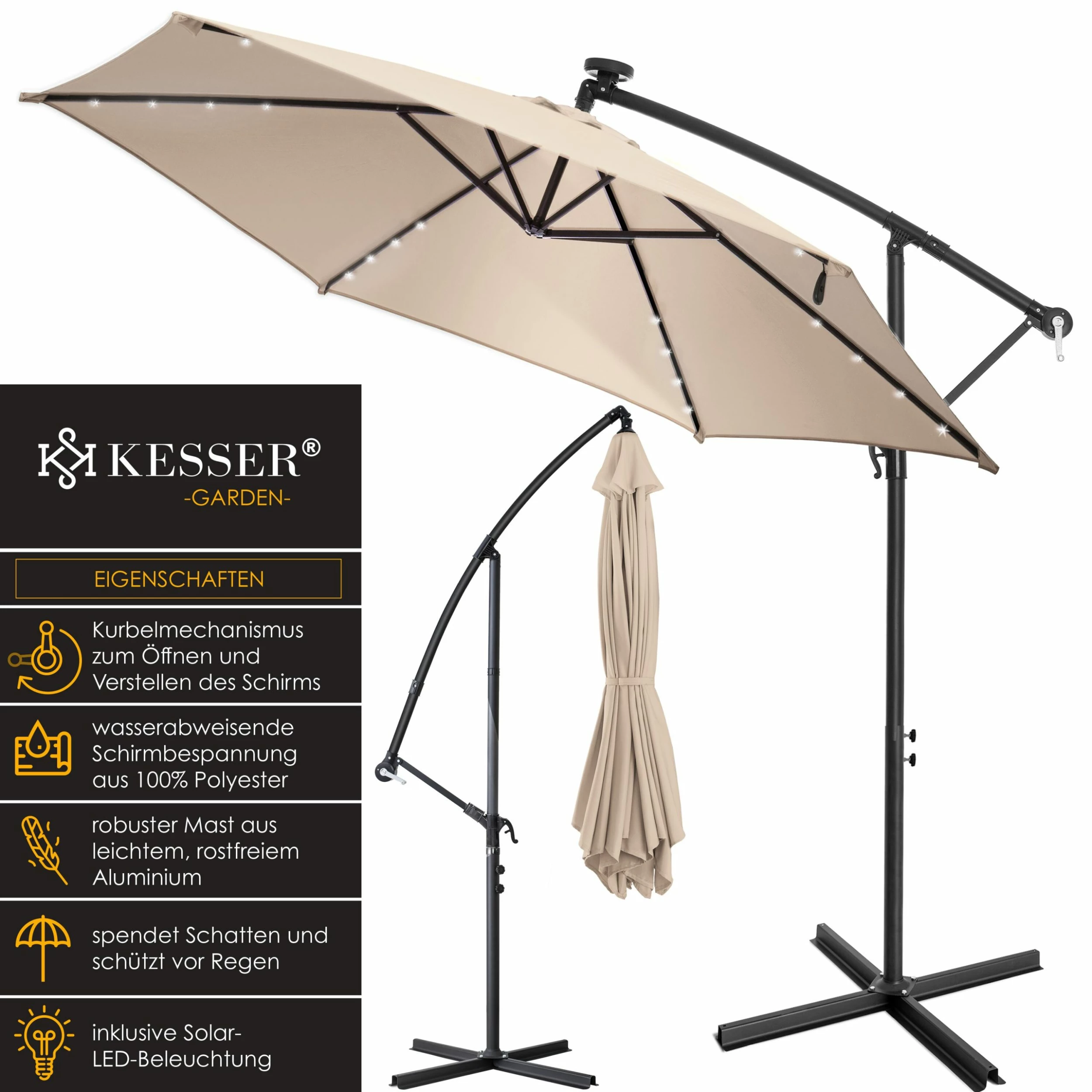 KESSER Sonnenschirm – Ihr idealen Begleiter für den Sommer, robust, UV-Schutz, Inkl. Abdeckung, einstellbaren Neigungswinkel, LED Beleuchtung und Handkurbel zum Öffnen und Schließen