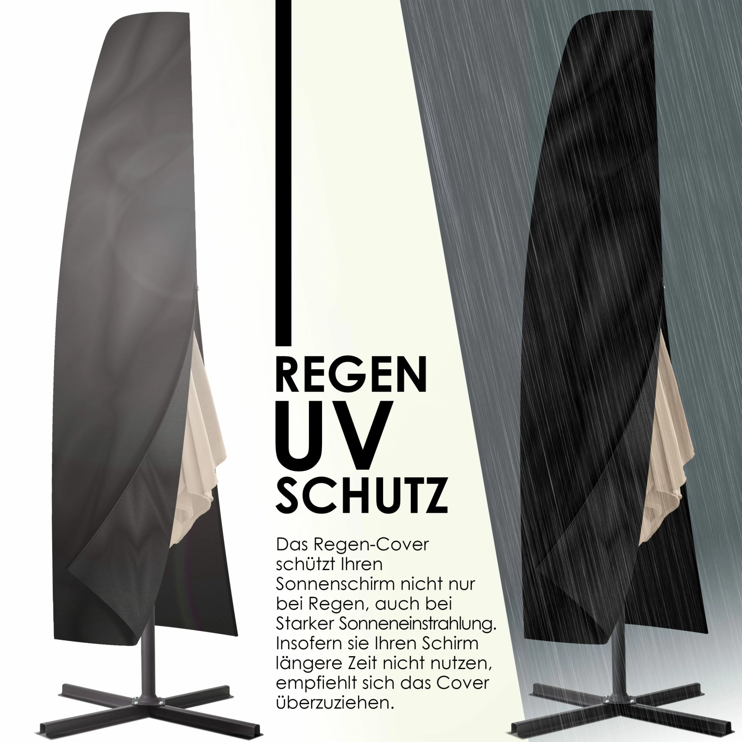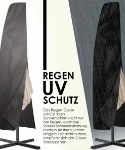 Das mitgelieferte Cover für Schutz gegen Regen und UV-Strahlung sorgt dafür, dass Ihr Sonnenschirm optimal geschützt ist. Insbesondere wenn Sie Ihren Schirm längere Zeit nicht nutzen, empfiehlt sich die Schirm Abdeckung überzuziehen, um ein Ausbleichen zu verhindern.