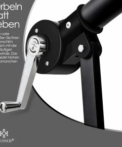 Mit dem integrierten Kurbelsystem können Sie den Schirm bequem mit der leichtläufigen Handwinde öffnen und schließen. So haben Sie in Sekunden Ihren Sonnenschirm gespannt und können den Sommer genießen – Kurbeln statt schwer heben.