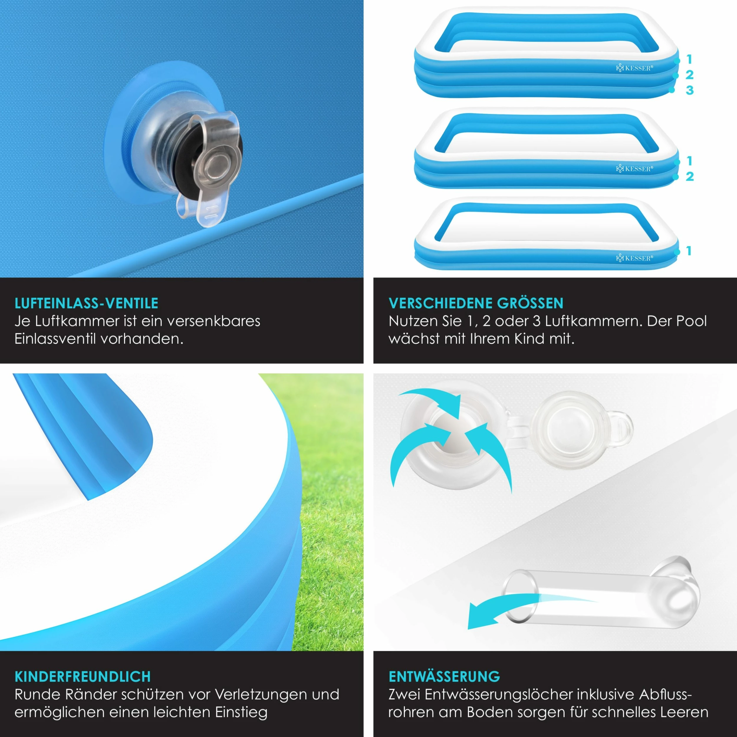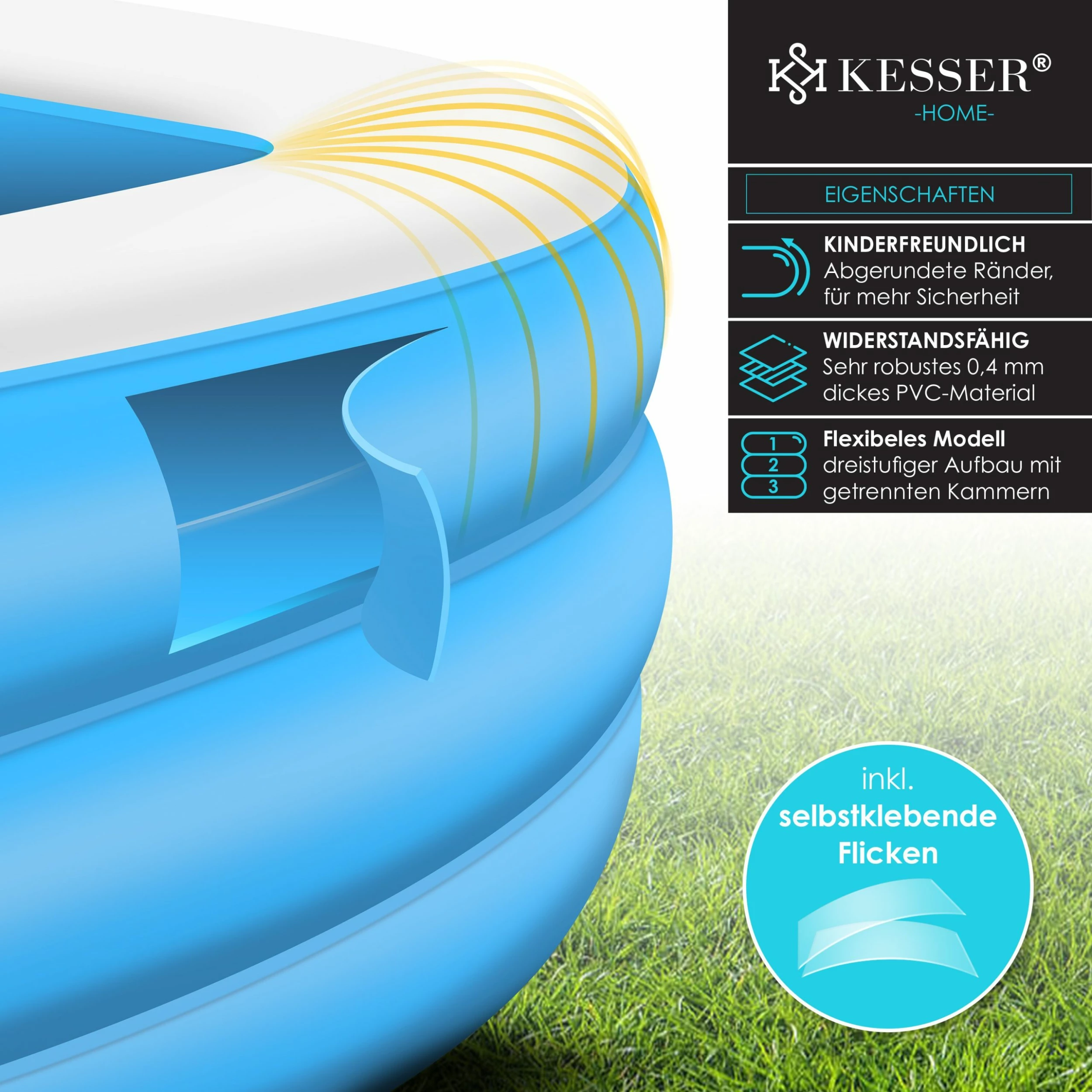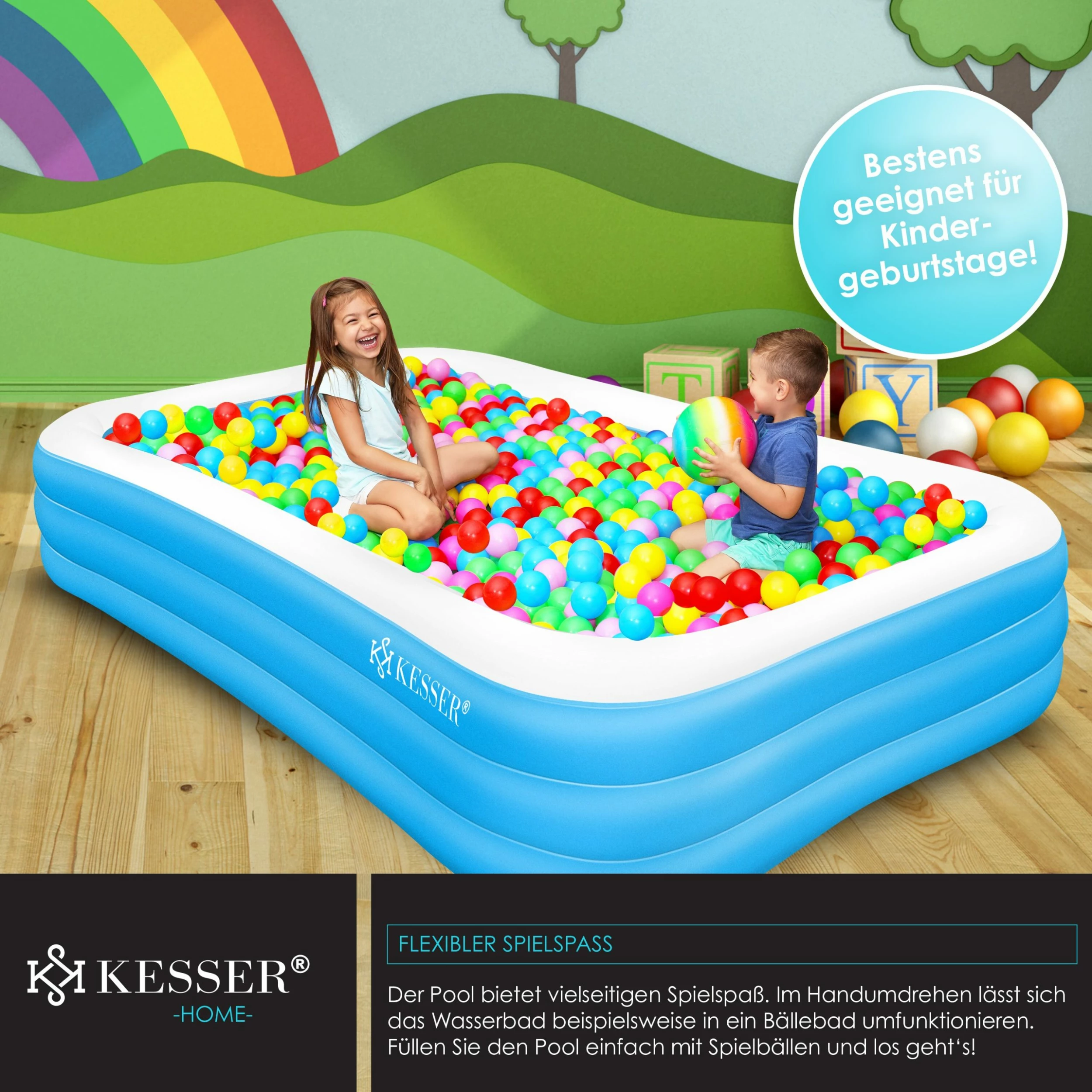 KESSER aufblasbarer Pool, große Füllmenge, Lufteinlass-Ventile, kinderfreundlich, widerstandsfähig, verwendbar als Bällebad mit getrennten Luftkammern