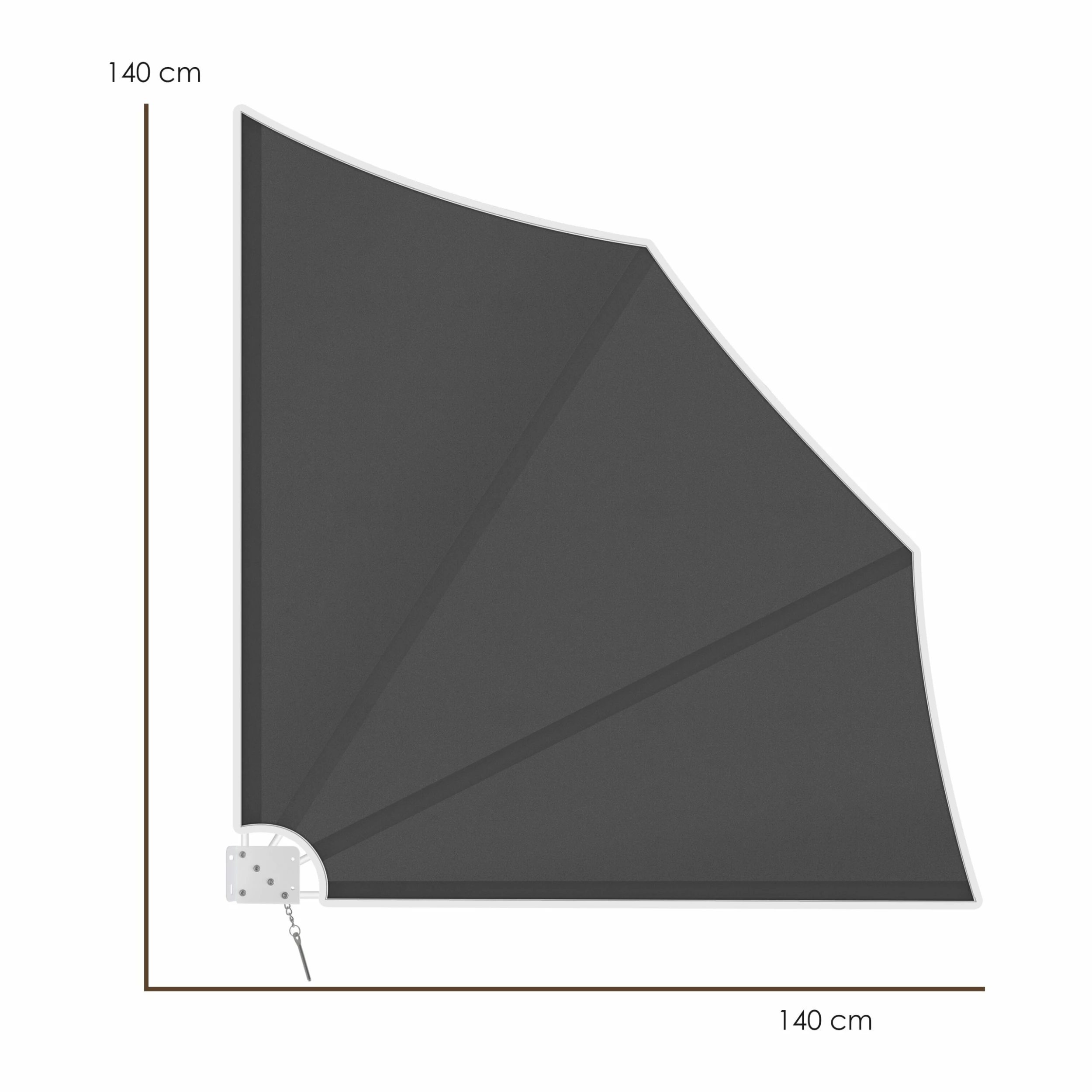 Schaffen Sie sich draußen ein lauschiges Plätzchen hinter dem blickdichten Balkonfächer. Nach Gebrauch lässt sich die schützende Fächermarkise einfach und platzsparend nach oben zusammenklappen. Die Montage ist schnell und unkompliziert alleine zu bewältigen. Beschränken Sie Sonne, Wind und unerwünschte Blicke auf ein Wohlfühlmaß mit dem flexiblen Balkonfächer.