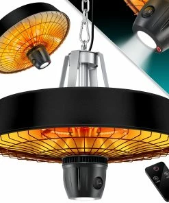 Das Heizelement arbeitet in 3 Heizstufen 1000W, 1500W & 2500W und lässt sich hervorragend mit der mitgelieferten Fernbedienung steuern. Der Infrarotstrahler lässt sich unkompliziert hängend an Decken, Zeltgerüsten oder Terrassenüberdachungen installieren. Eine stabile Edelstahlkette, die für den nötigen Sicherheitsabstand von 30 cm zur Decke sorgt, ist im Lieferumfang enthalten. Achten Sie zusätzlich auf den Mindestabstand zum Boden von 180cm und 25cm zu allen Seiten.