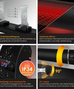 Ein warmes Plätzchen auch im Winter? Gar kein Problem mit dem hochwertigen Infrarot–Heizstrahler von KESSER. Durch die einfache und schnelle Montage lässt sich das Heizgerät schnell an der Wand anbringen – so stellt das Gerät keine Gefahr für Kinder oder Haustiere dar. Egal wo sie den Heizleistungs-Strahler anbringen möchten, durch seinen extrem leisen Geräuschpegel, lässt sich die Infrarotheizung überall verwenden. Beim schlafen oder bei Gesprächen mit Ihren Freunden im Garten können Sie das Gerät laufen lassen ohne dabei gestört zu werden. Optimieren Sie die Einstrahlung der Wärme – unser Strahler ermöglicht individuelles Ausrichten, je nach Situation und Person.