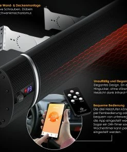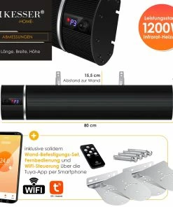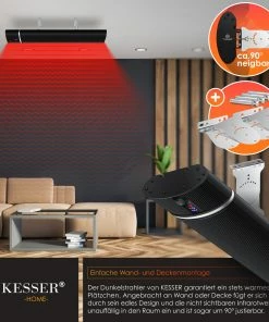 KESSER innovativer Dunkelheizstrahler mit 3 leistungsstarken Heizstufen per Fernbedienung und Tuya-WiFi App steuerbar, für Indoor und Outdoor geeignet, Inkl. Wand- und Deckenaufhängung sowie integriertem Timer und einfacher Wandmontage