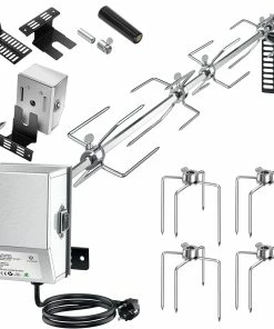 Ob nun Gasgrill, Holzekohlegrill oder Smoker – das Grillspießset verspricht hervorragende und leckere Gerichte. So können dank der massiven und langlebigen Spießstange neben dem Grillhähnchen zum Beispiel auch Rollbraten, Gyros oder Wildfleisch bis zu 25Kg herzhaft saftig durchgegart werden.