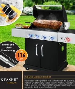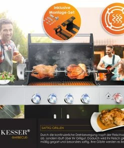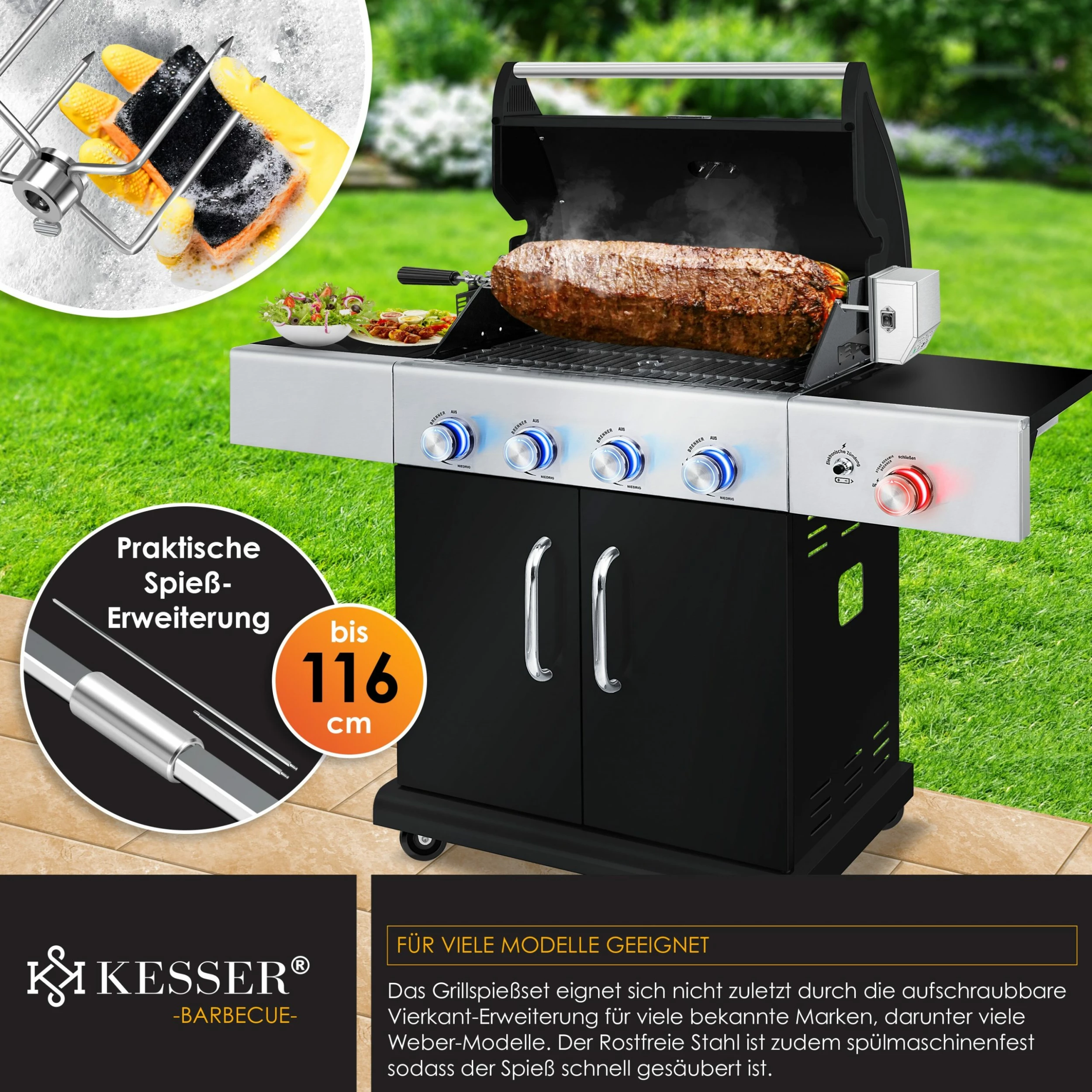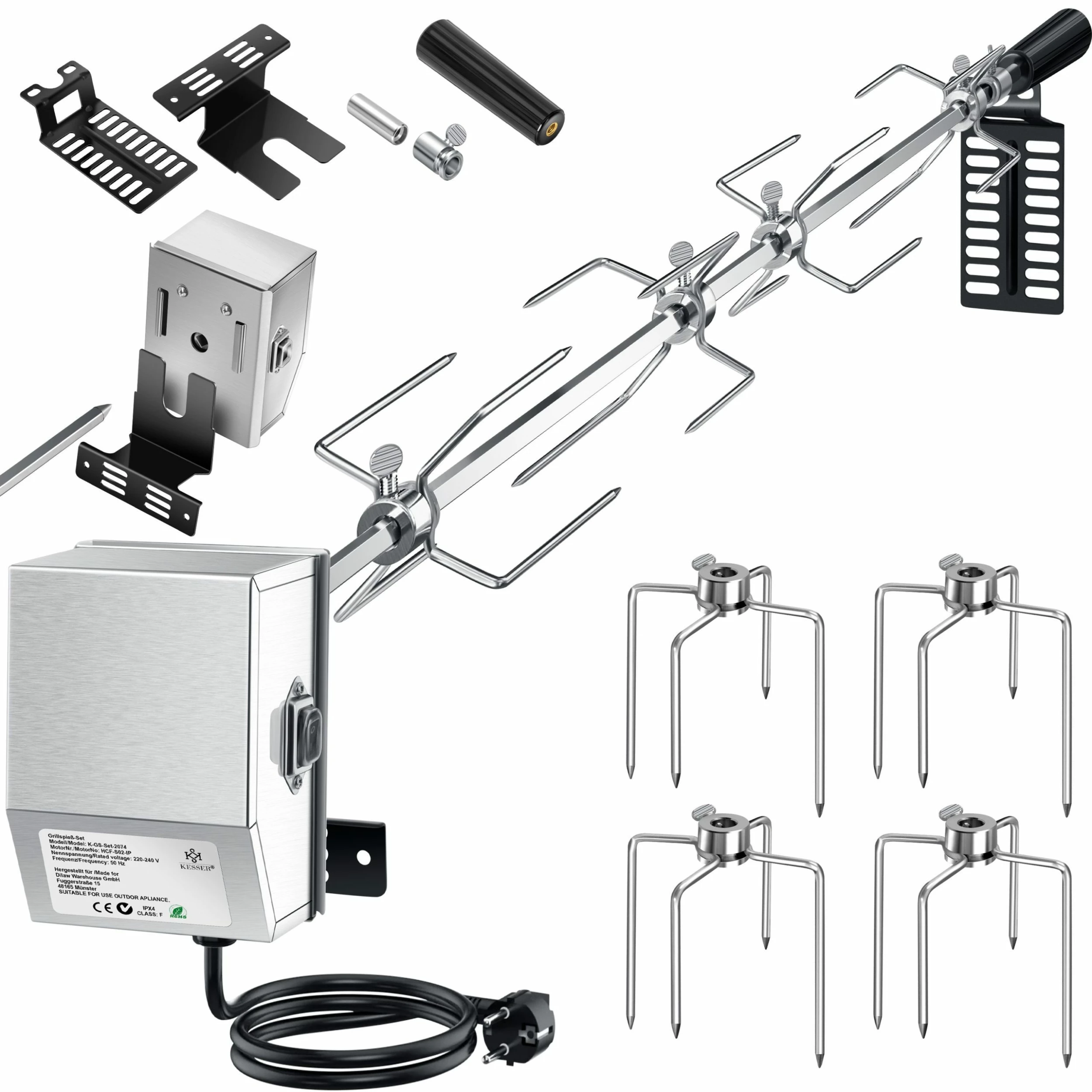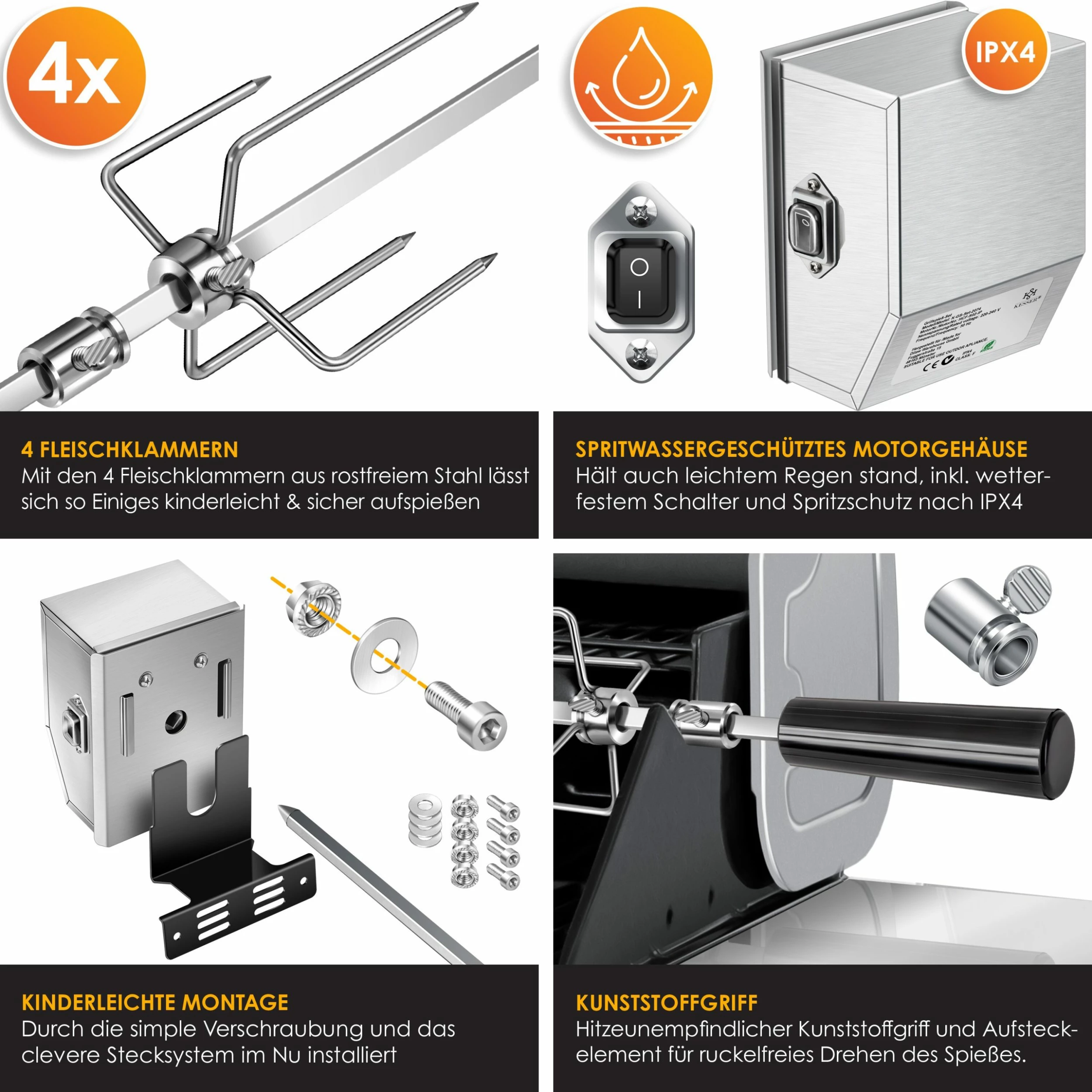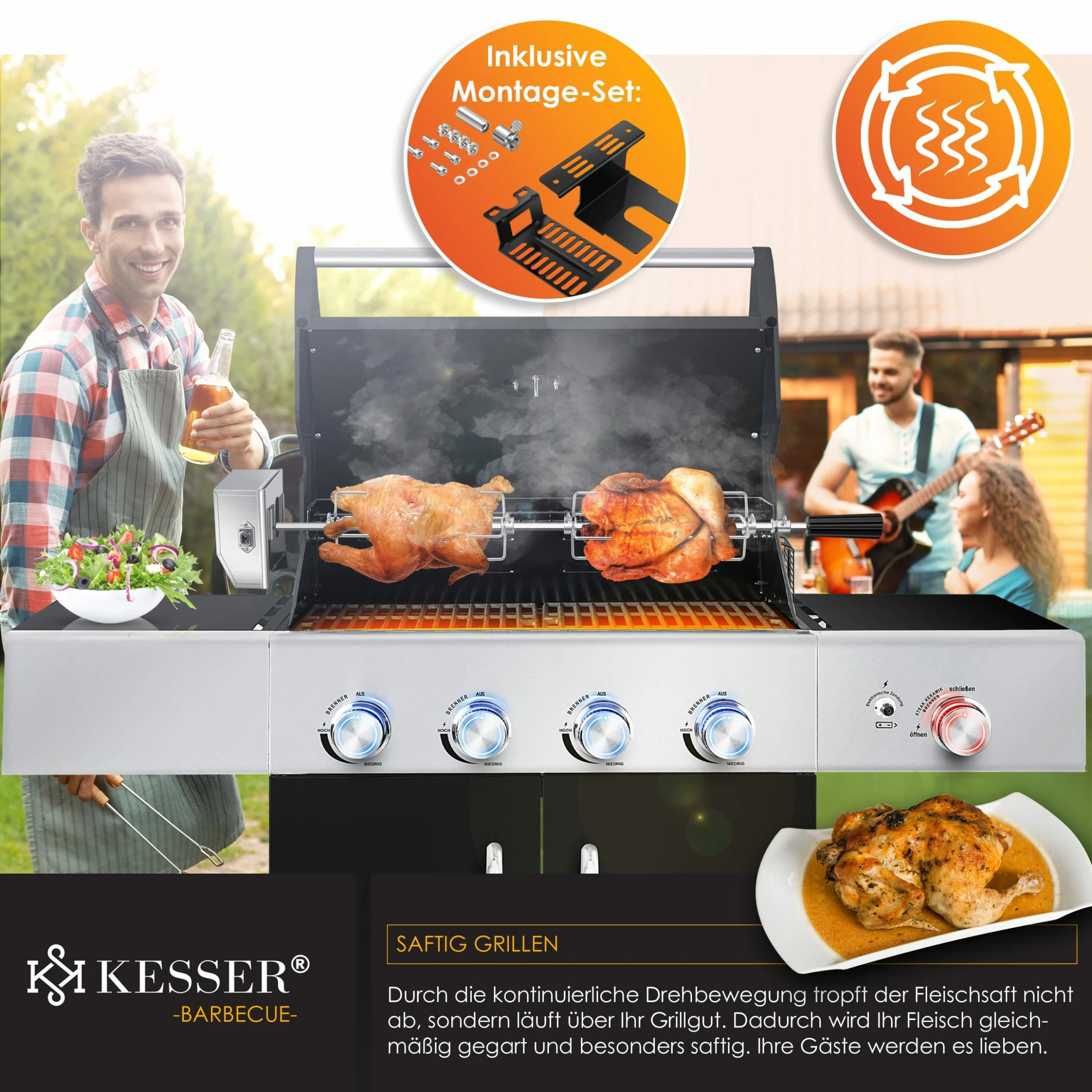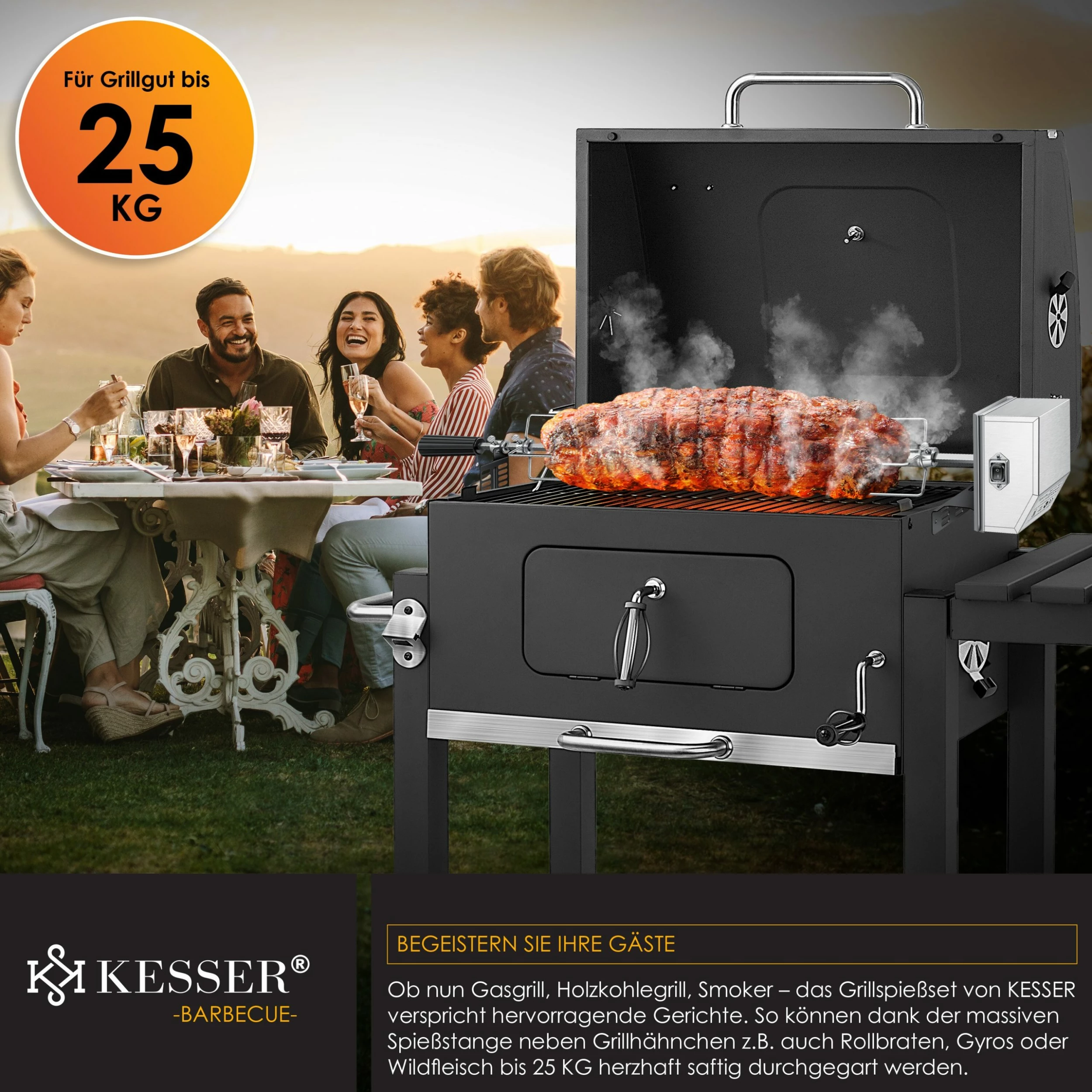 KESSER Grillspieß Set aus rostfreiem Stahl für eine langlebige Qualität, 4 robusten Fleischgabeln und einem gleichdrehendem 4 Watt Motor mit 3-5 Umdrehungen pro Minute, hohe Traglast bis zu 25Kg für diverses Grillgut