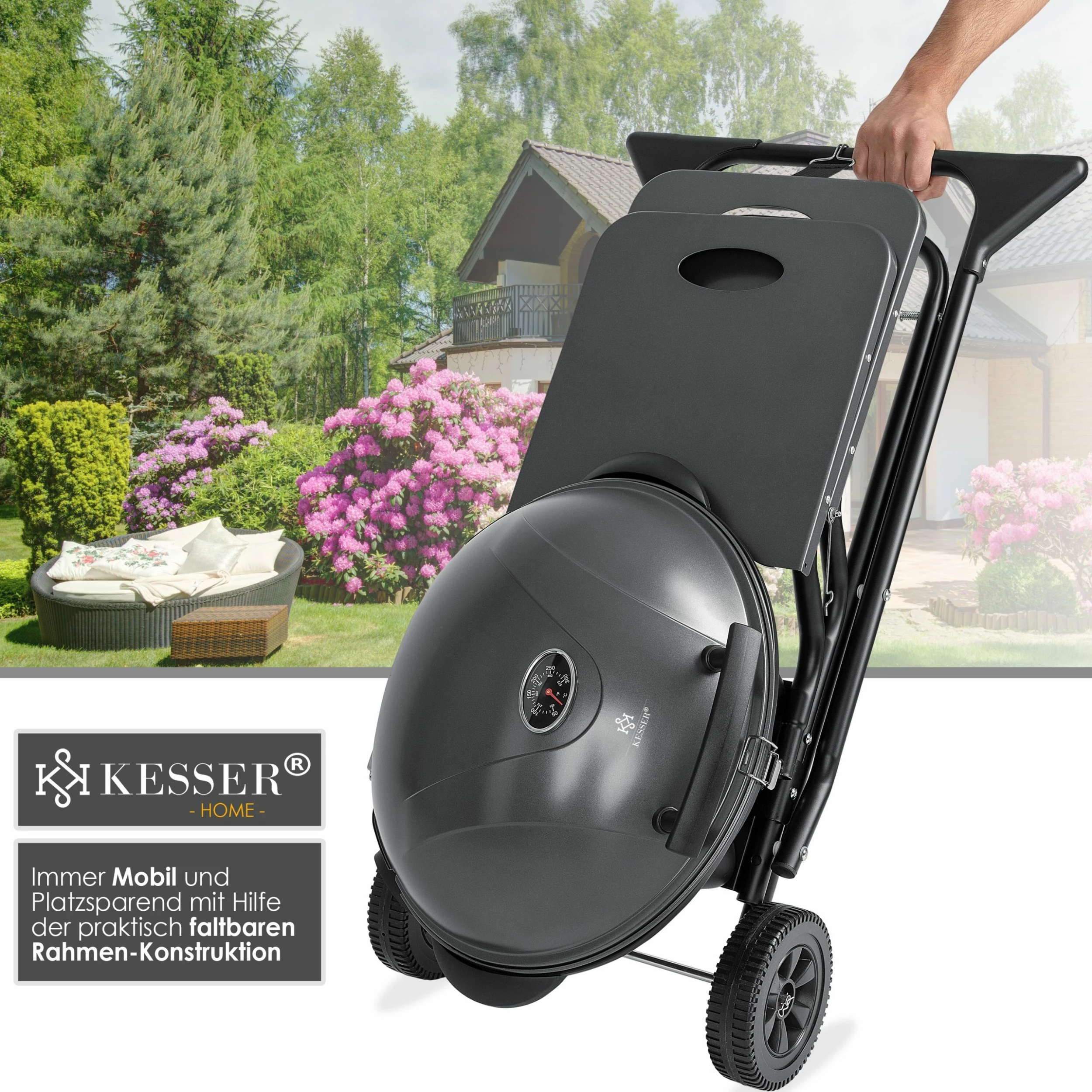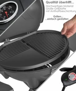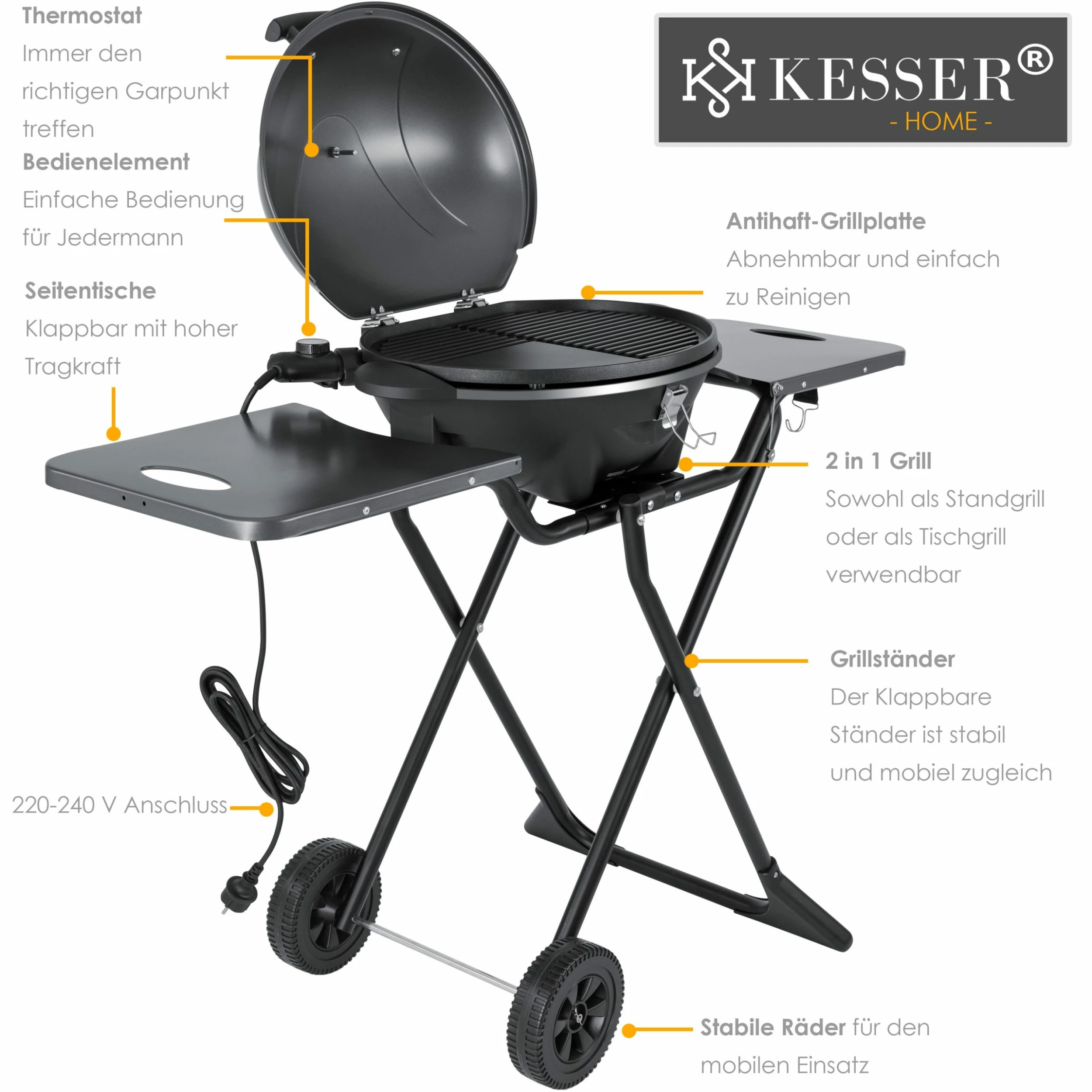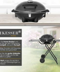 KESSER Elektrogrill für ein rauchfreies Grillen, 2 robuste Räder für einen einfachen Transport, als Stand- und Tischgrill verwendbar, geriffelte und glatte Griffoberfläche