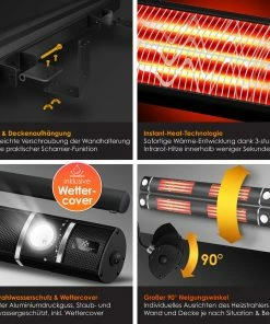 Dieser leistungsstarke Infrarot Heizstrahler mit einer Wand- und Deckenhalterung aus dem Hause KESSER verfügt über 3 Schaltstufen (1000W, 2000W, 3000W). Zur Einrichtung können Sie die mitgelieferte Fernbedienung verwenden. Es handelt sich hierbei, um ein Wandgerät welches Sie somit fest und stabil an Ihrem Wunschort anbringen können. Zusätzlich sorgt die Heizung für eine angenehme, weiche und augenschonende Wärmequelle. Es sorgt für schnelles, sofortiges und effizientes Aufheizen ohne Vorheizen dank Infrarotwärme – ideal für den Gastronomiebereich, Schwimmbäder, beim Camping oder in der Werkstatt – der Wärmestrahler versorgt problemlos bis zu 25m².