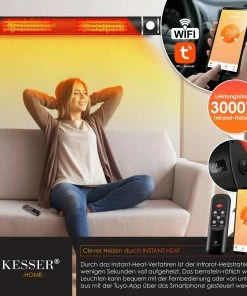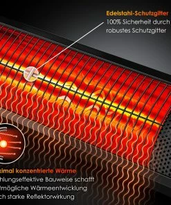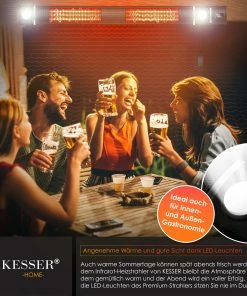 Heizen Sie strom– und energiesparend, mit dem integrierten Instant–Heat–Verfahren! In 2 Sekunden ist unsere Wärmelampe für Sie einsatzbereit und voll aufgeheizt, dies sorgt für ein warmes Leuchten. KESSER sorgt für schöne und ruhige Entspannungsmomente, bedienen sie ganz bequem im sitzen oder liegen Ihre Infrarot–Lampe mit der mitgelieferten Fernbedienung. Aber auch warme Sommertage können spät Abends frisch werden. Mit dem Infrarot–Heizstrahler bleibt die Atmosphäre trotzdem gemütlich und Sie können den Abend voller Erfolg mit Ihren Freunden oder Familie im Garten, auf dem Balkon oder der Terrasse ausklingen lassen.