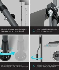 Das hochwertige Material des Schattenspenders wirft einen kühlen Schatten, welcher für eine angenehme Temperatur und sanftes Licht sorgt. Zudem ist das Material des Rahmens aus einem sehr stabilen Stahl und verleiht der Markise eine hohe Nutzungsdauer.