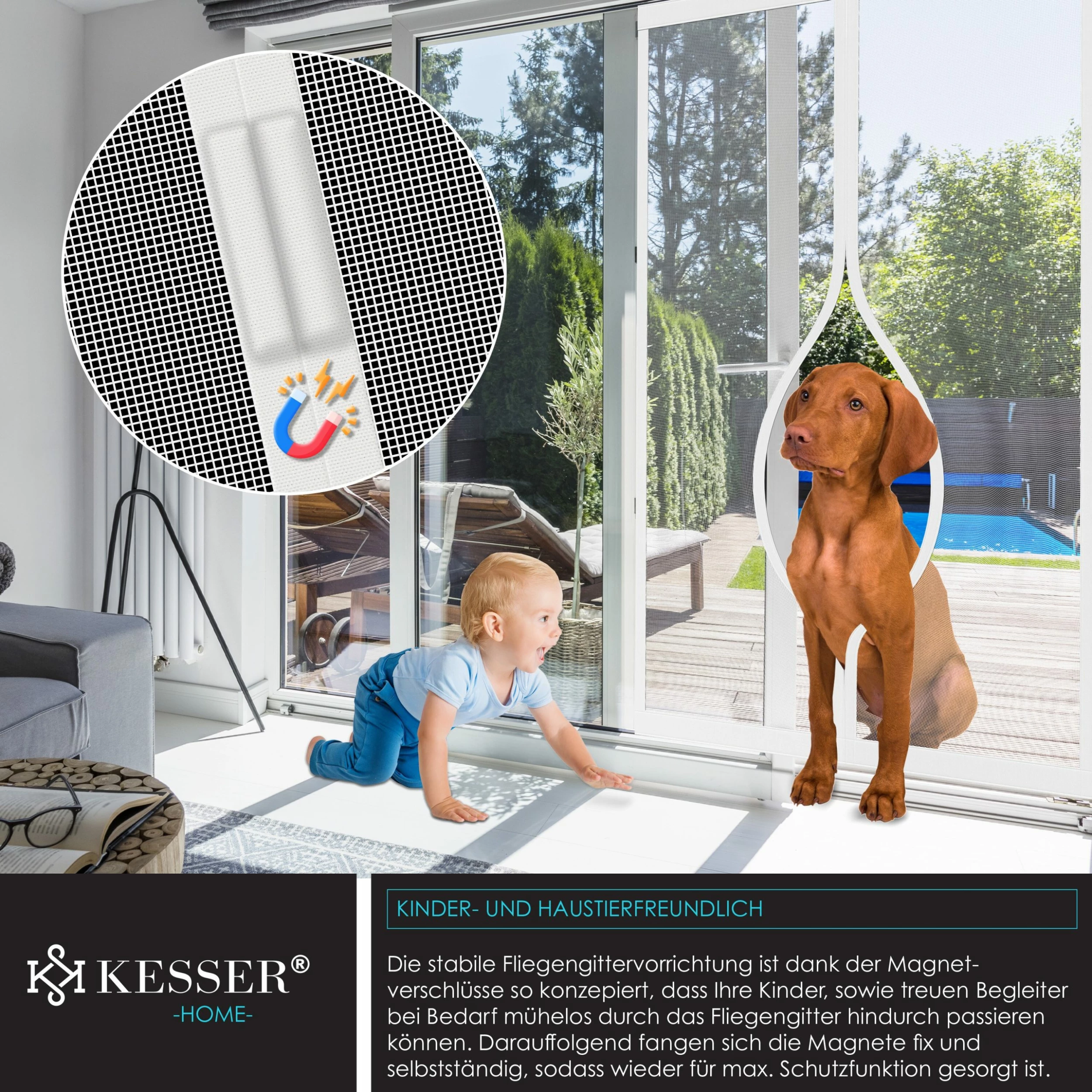 KESSER Fliegengitter-Tür erhältlich in 6 unterschiedlichen Größen für einen perfekten Schutz vor Insekten, optimale Luftzirkulation trotz dichtem und hochwertigem Schutzgitter, klare Sicht dank Gitterstruktur, im Durchgang 7 öffnende Magnetpaare, einfache und schnelle Installation