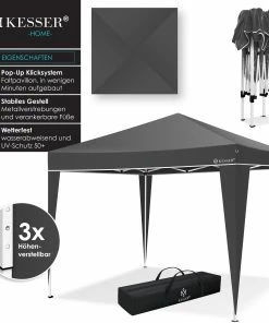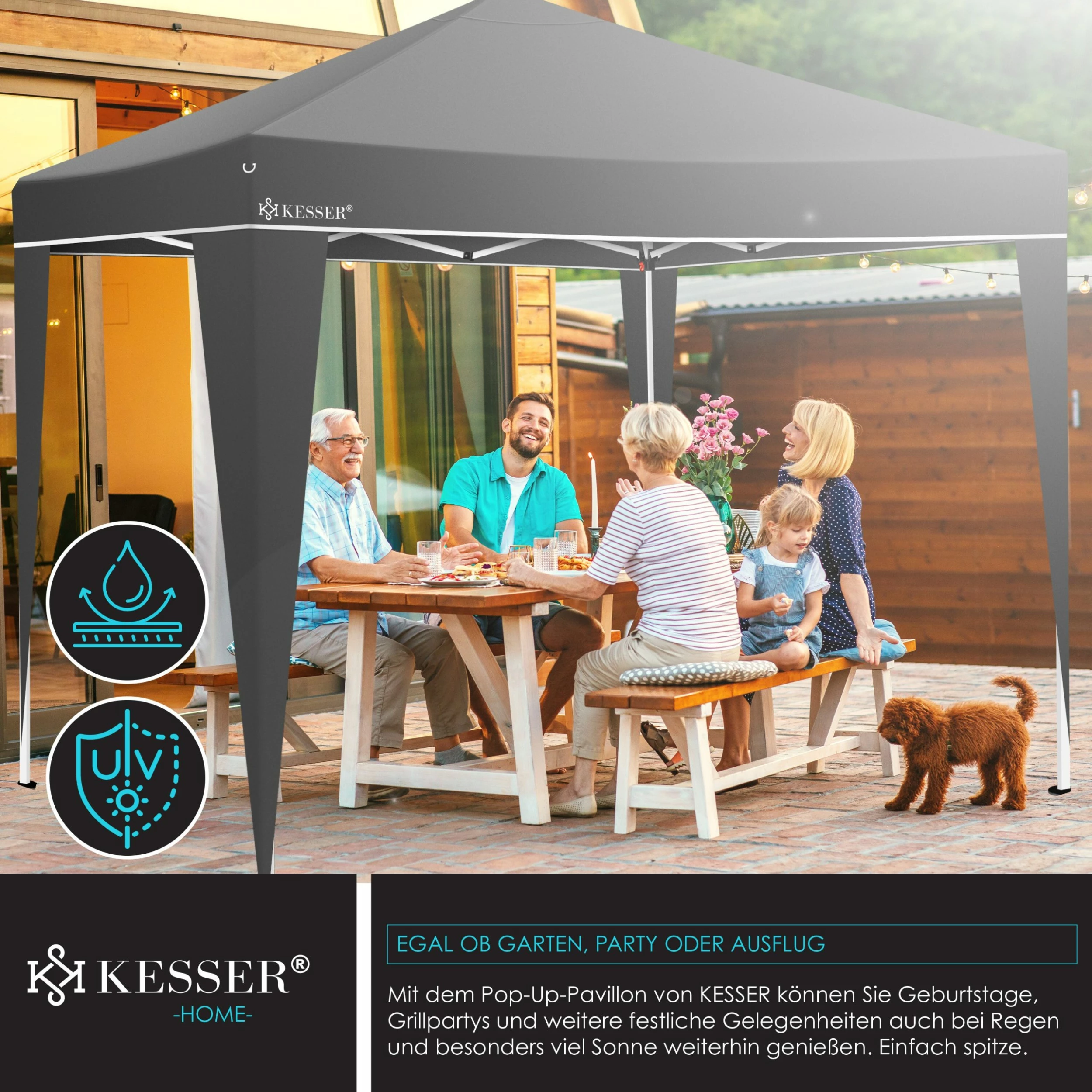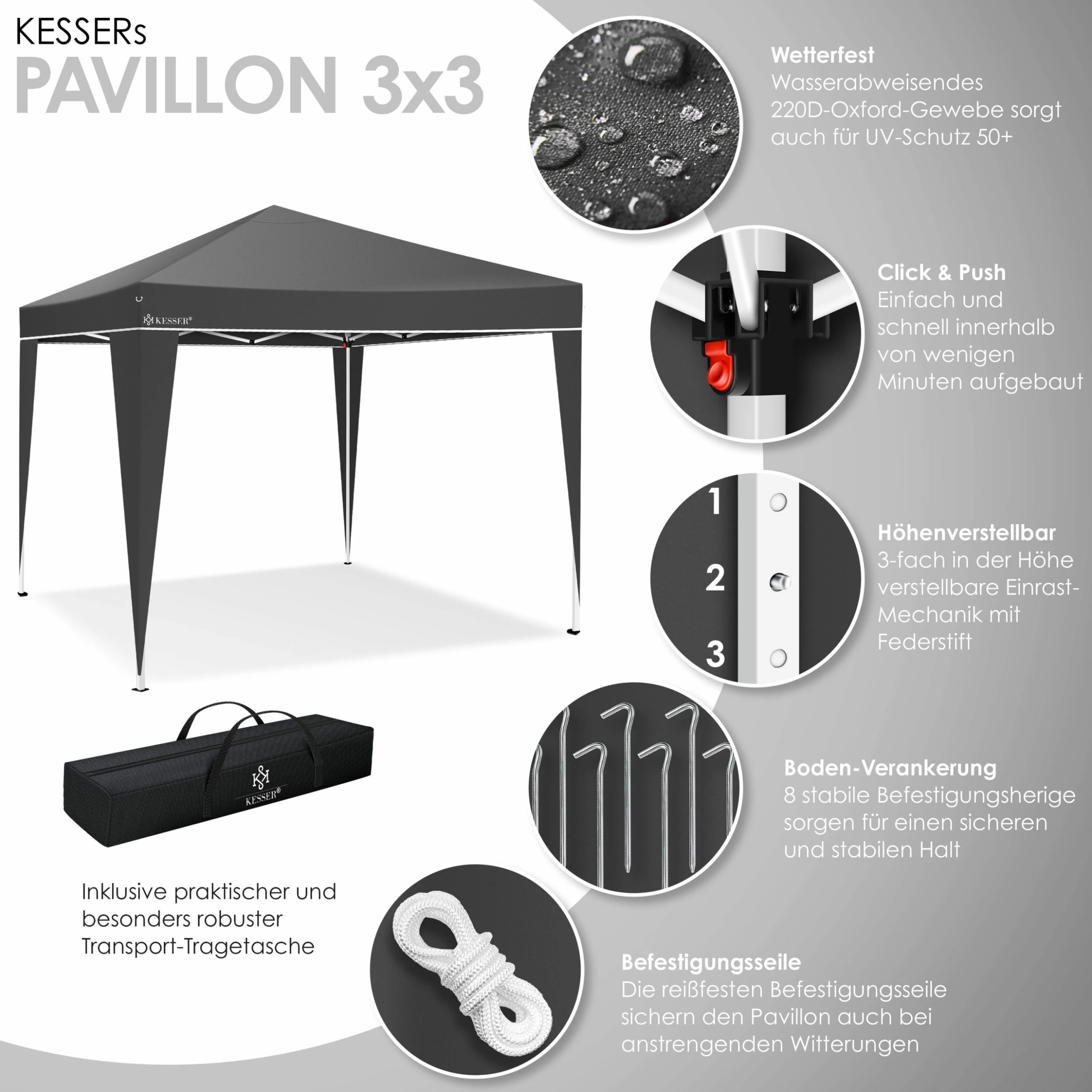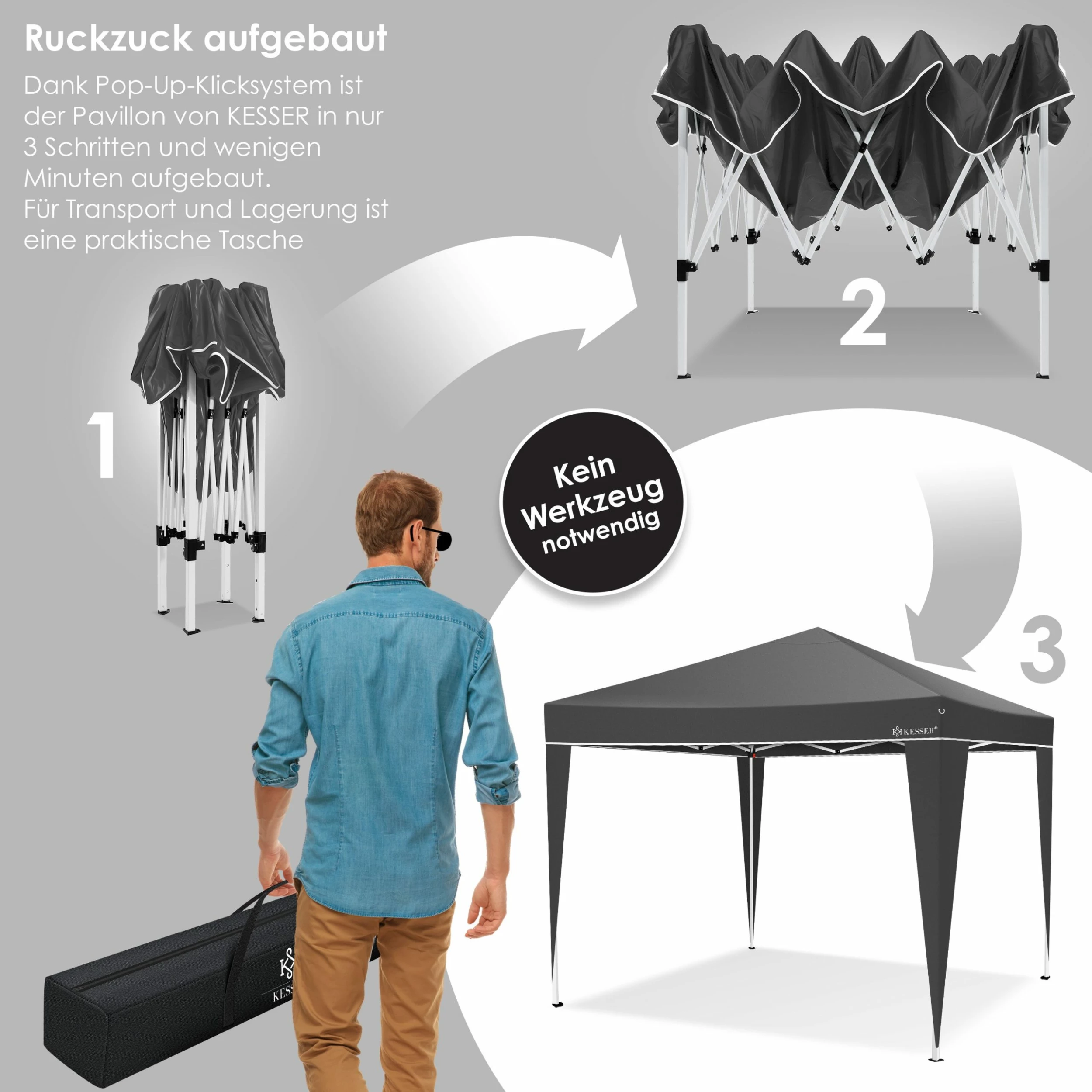 KESSER Pavillon 3x3m, einfache Montage ohne Werkzeug für entspannte Stunden im Freien, langlebig dank wasserabweisendem Material und UV-Schutz 50+