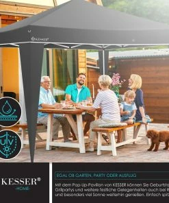 Der eigene Garten ist der ideale Ort um einfach mal zu Entspannen, zum Wohlfühlen oder für gemütliche Tage mit der Familie und Ihren Freunden. Oftmals enden solche Momente aber dann, sobald schlechtes Wetter aufkommt. Mit unserem Pavillon der Marke KESSER können Sie Geburtstage, Grillpartys und weitere festliche Gelegenheiten bei Regen problemlos in Ihrem Garten weiterführen.