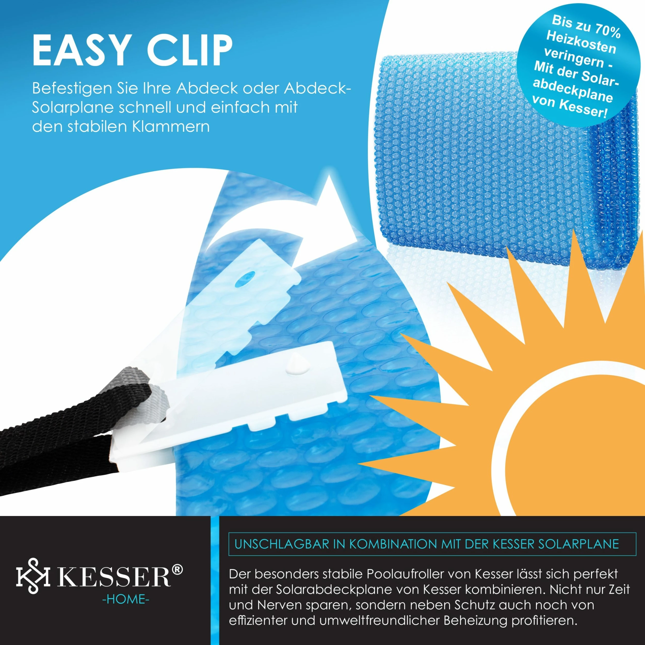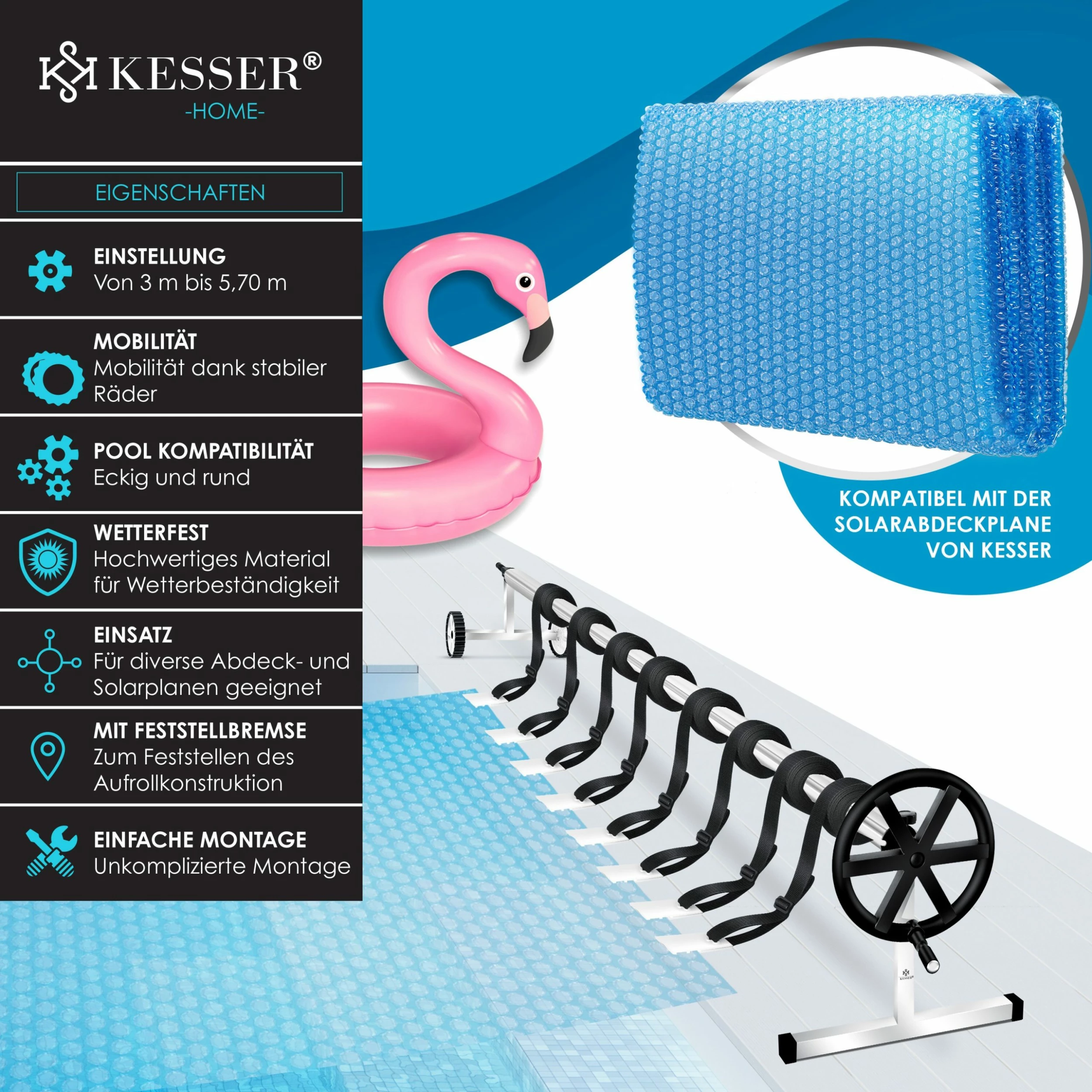 KESSER Poolaufroller Premium, UV- und Wetterfest, von 3m – 5,70m einstellbar, Mobilität dank stabiler Räder, kompatibel für sämtliche Pools, integrierte Feststellbremse, einfache und unkomplizierte Montage