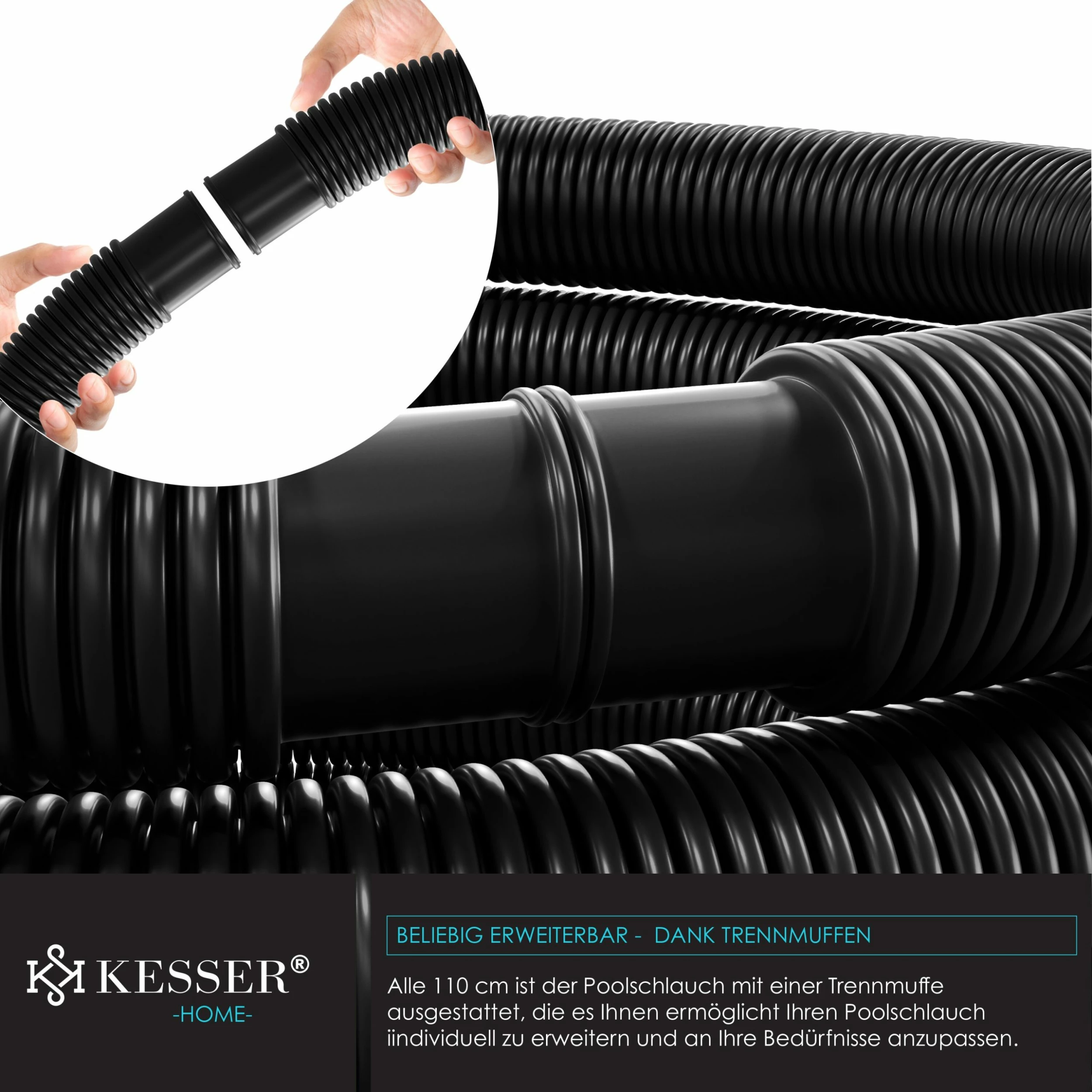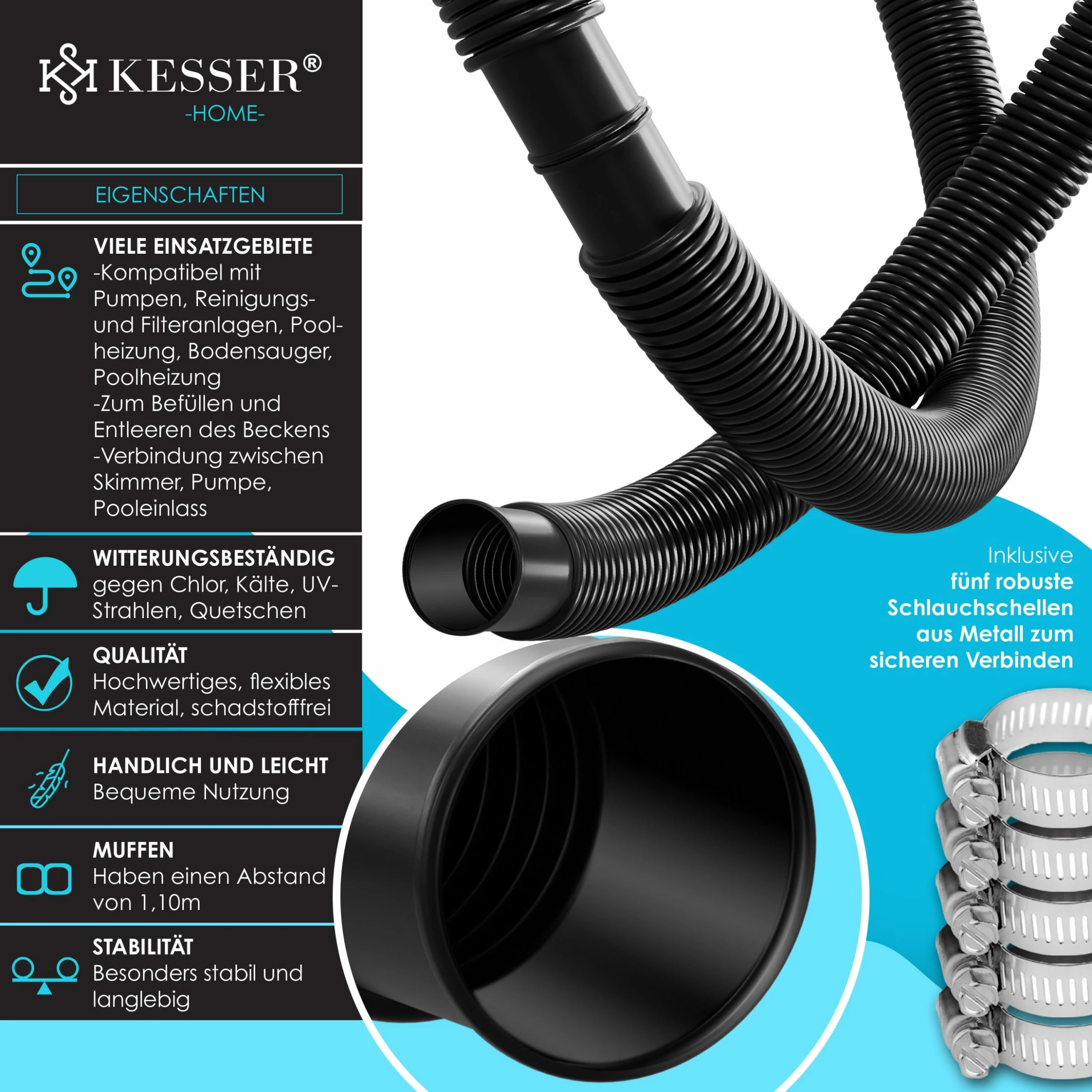 KESSER Poolschlauch aus hochwertigem, besonders langlebigem sowie schadstofffreiem und flexiblem Material, beständig gegen Chlor, Kälte, UV-Strahlen und Quetschen, Abstand der Muffen beträgt 1,10m und ist daher für viele Einsatzgebiete geeignet