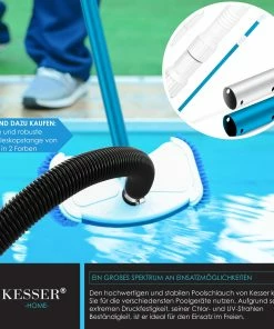 Den hochwertigen und stabilen Poolschlauch von KESSER können Sie für verschiedenste Poolgeräte nutzen. Aufgrund seiner extremen Druckfestigkeit, seiner Chlor– und UV–Strahlen Beständigkeit ist er ideal für den Einsatz im Freien geeignet. Für die optimale Poolpflege empfehlen wir Ihnen dazu die stabile und robuste Poolteleskopstange von KESSER. Diese ist in zwei Farben erhältlich und lässt Ihren Pool glänzen.