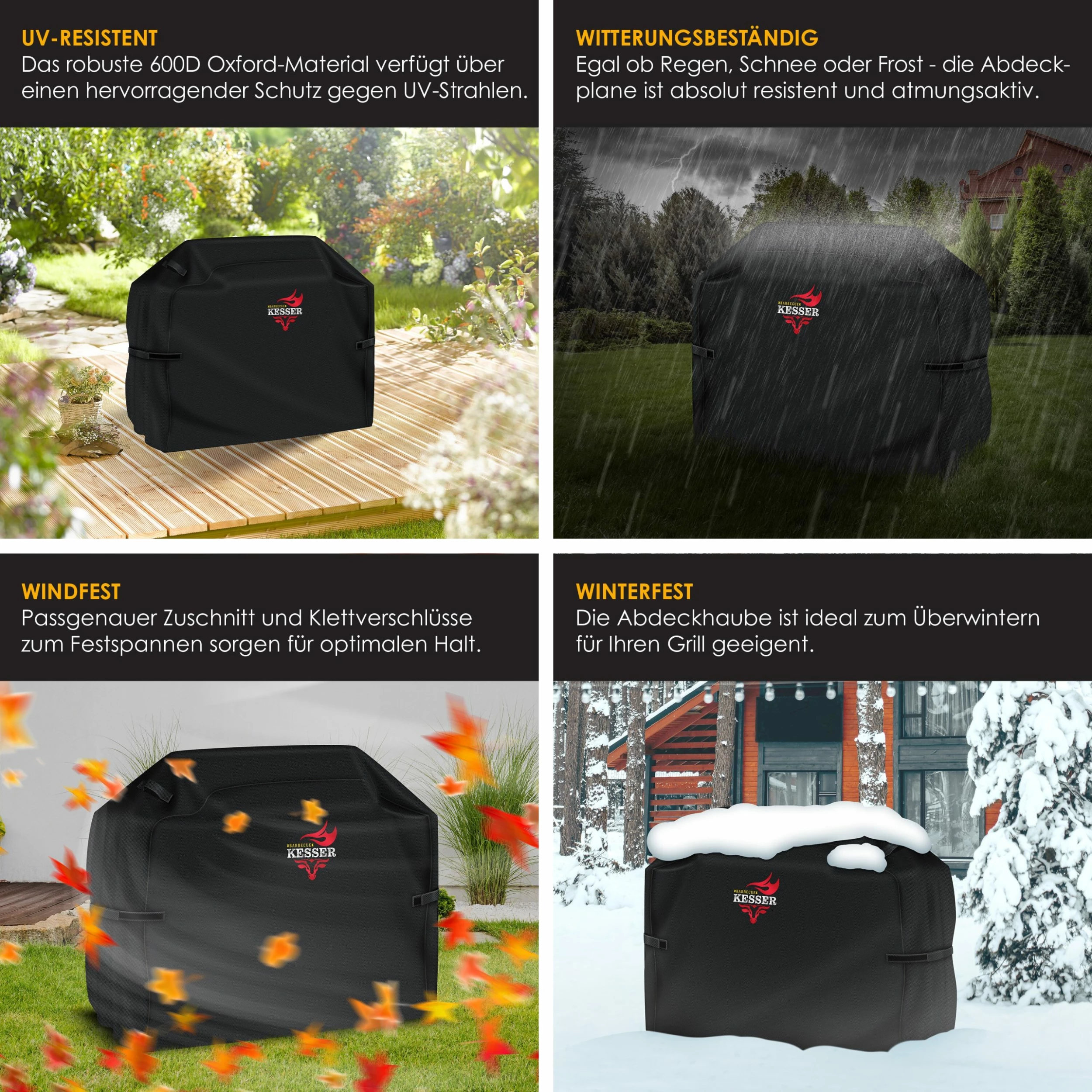 KESSER Grillabdeckung für viele gängige Grills, reißfestes und robustes Material, wasserabweisend und UV-beständig, sicherer halt dank verstellbarer Klettverschlüsse, kinderleichte Montage und schnell Abdeckung Ihres Grills