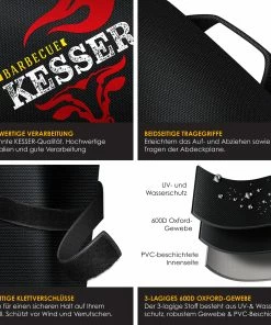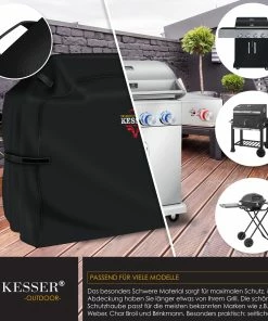 Auch hier glänzt wieder die KESSER–QUALITÄT durch hochwertigste Materialverarbeitung. Zwei integrierte Griffe auf beiden Seiten erleichtern das Auf- und Abziehen, sowie den Transport der Abdeckplane. In nur wenigen Sekunden ist Ihr Grill bereit für den Einsatz und lästiges unterstellen des Grills nach der Nutzung ist von nun an Geschichte. Grillen war noch nie so bequem!