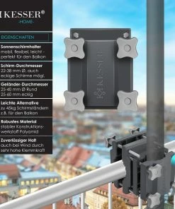 KESSER Sonnenschirmhalter Pro – hohe Flexibilität für eckige und runde Schirme sowie Geländer-geeignet, leichte alternative zu schweren Schirmständern, robustes und stabiles Material aus Polyamid, zuverlässiger Halt durch hohe Klemmkraft
