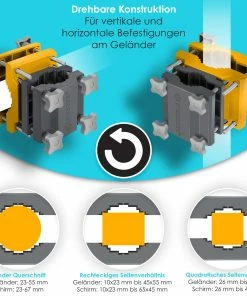• Quadratisches Seitenverhältnis Geländer: 26mm – 45mm