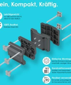 Durch sein geringes Eigengewicht von gerade einmal 380g ist die Schirmklemme ideal für den Balkon geeignet und eine Alternative zu schweren und unhandlichen Schirmhalterungen. Durch den hochwertigen Konstruktionswerkstoff Polyamid ist die Halterung besonders stabil und 100% rostfrei. Die Montage ist einfach und innerhalb weniger Minuten durchzuführen.