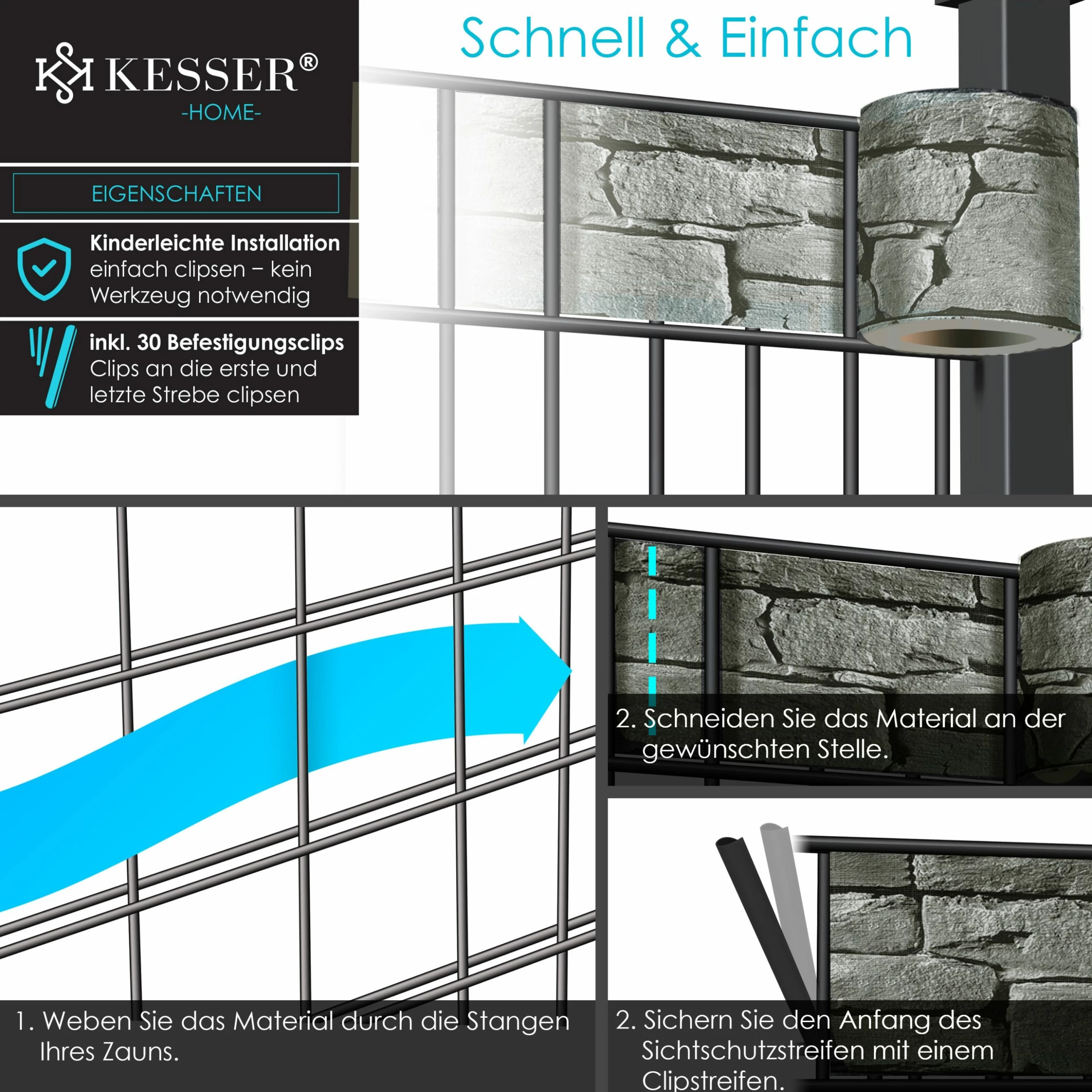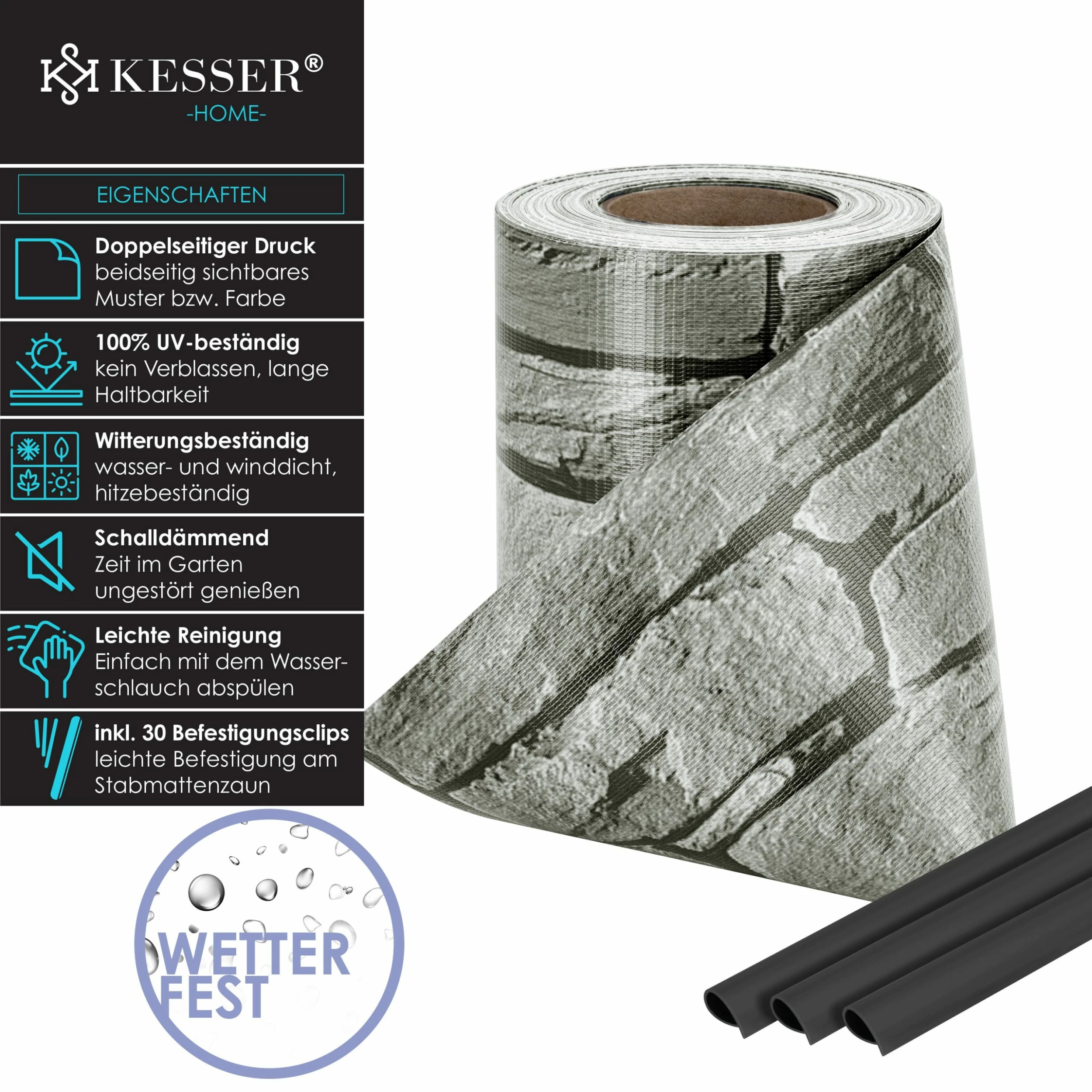 KESSER Sichtschutzrolle aus hochwertigem, schmutzabweisendem und wetterbeständigem PVC, geeignet für Temperaturen von -30°C bis + 70°C für Garten, Haus, Hof und Pool inkl. 30 Befestigungsclips