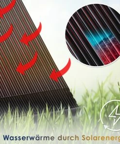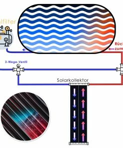 Der umweltfreundliche Sonnenkollektor, ohne jeglichen Energieverbrauch dank umweltschonender Solarenergie, erwärmt ohne weitere Zusatzkosten Ihr Pool – oder Schwimmbadwasser um mehrere