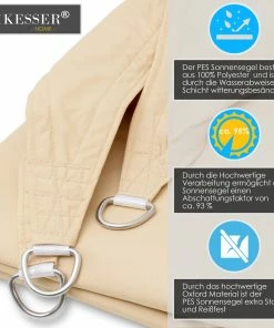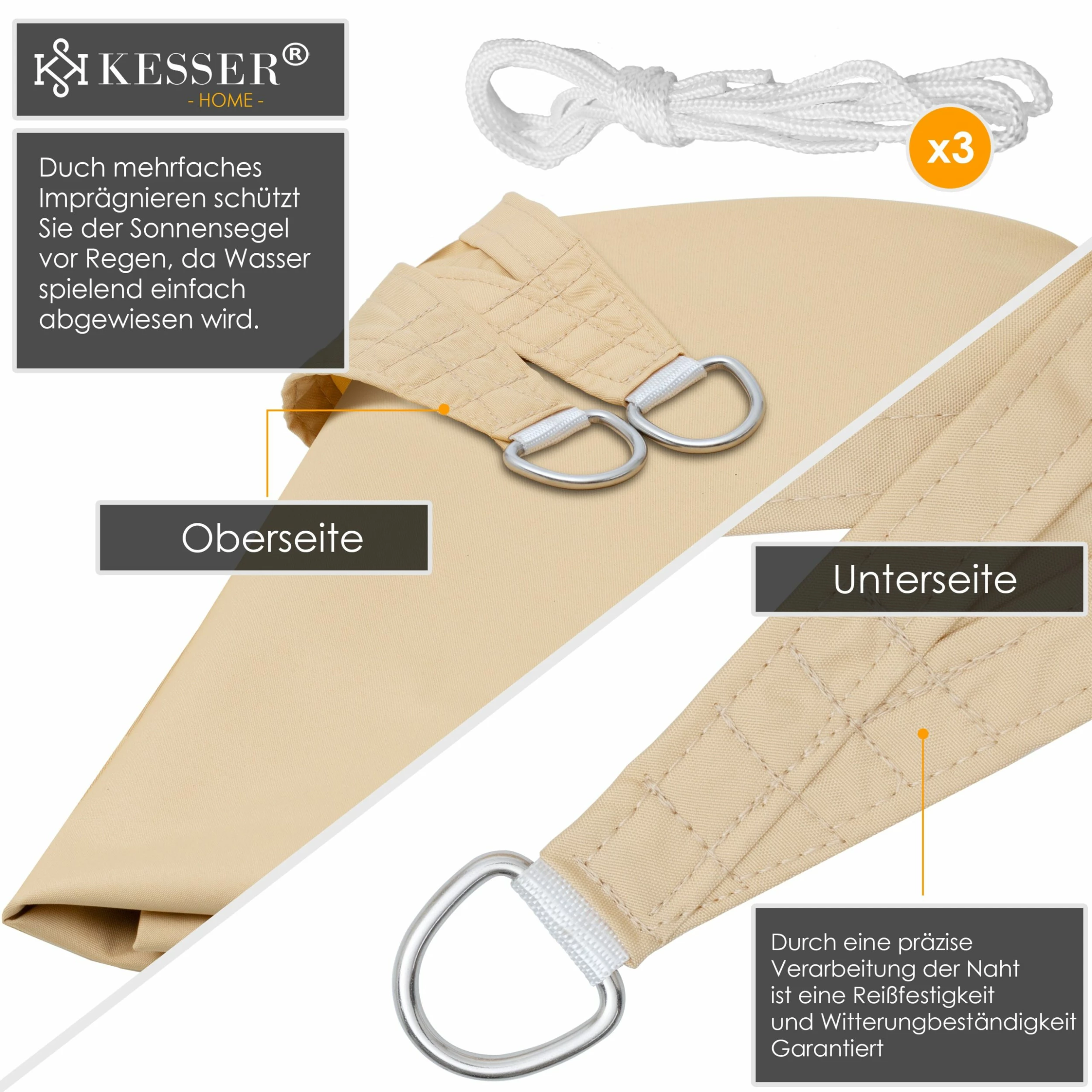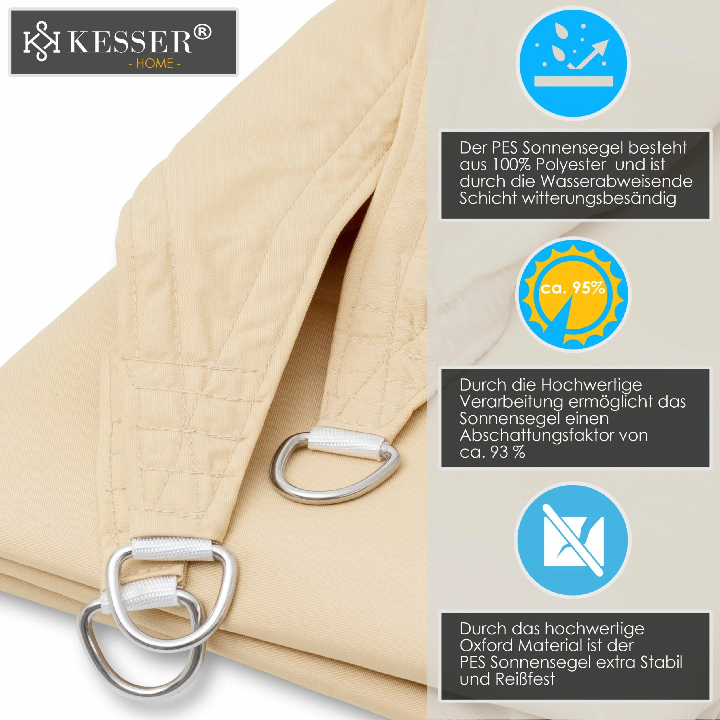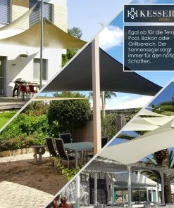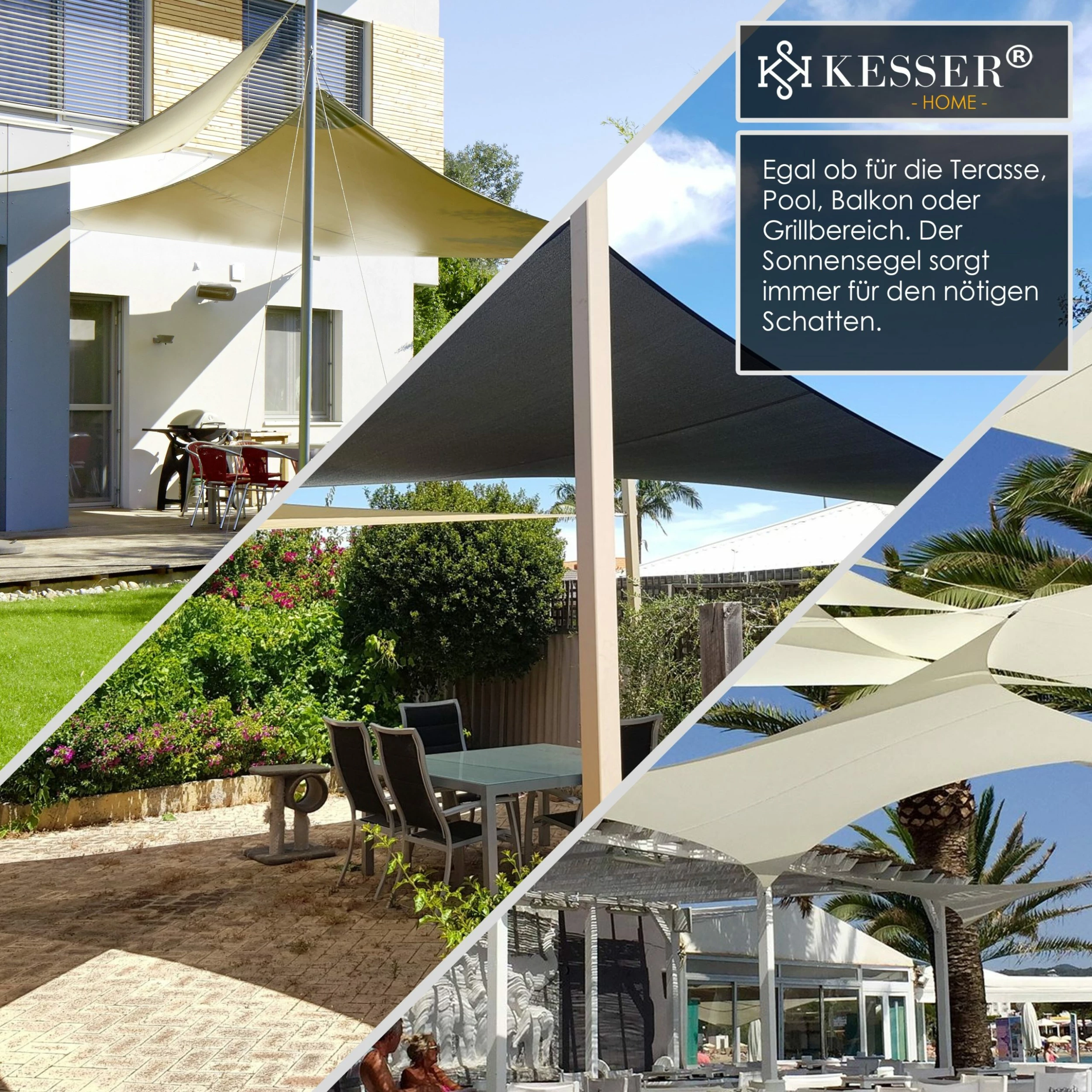 SCHNELLE MONTAGE: KESSER Sonnensegel ist der ideale Schattenspender für den Sommer! Egal ob auf der Terrasse, Balkon, Garten Pool, Spielplätze oder beim Camping, das Segel ist überall schnell und einfach montiert.